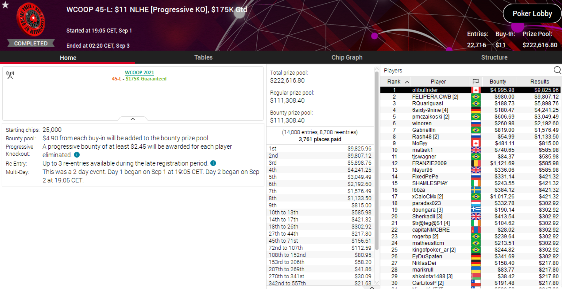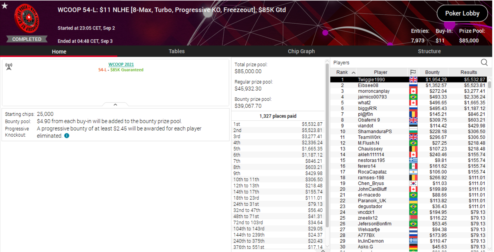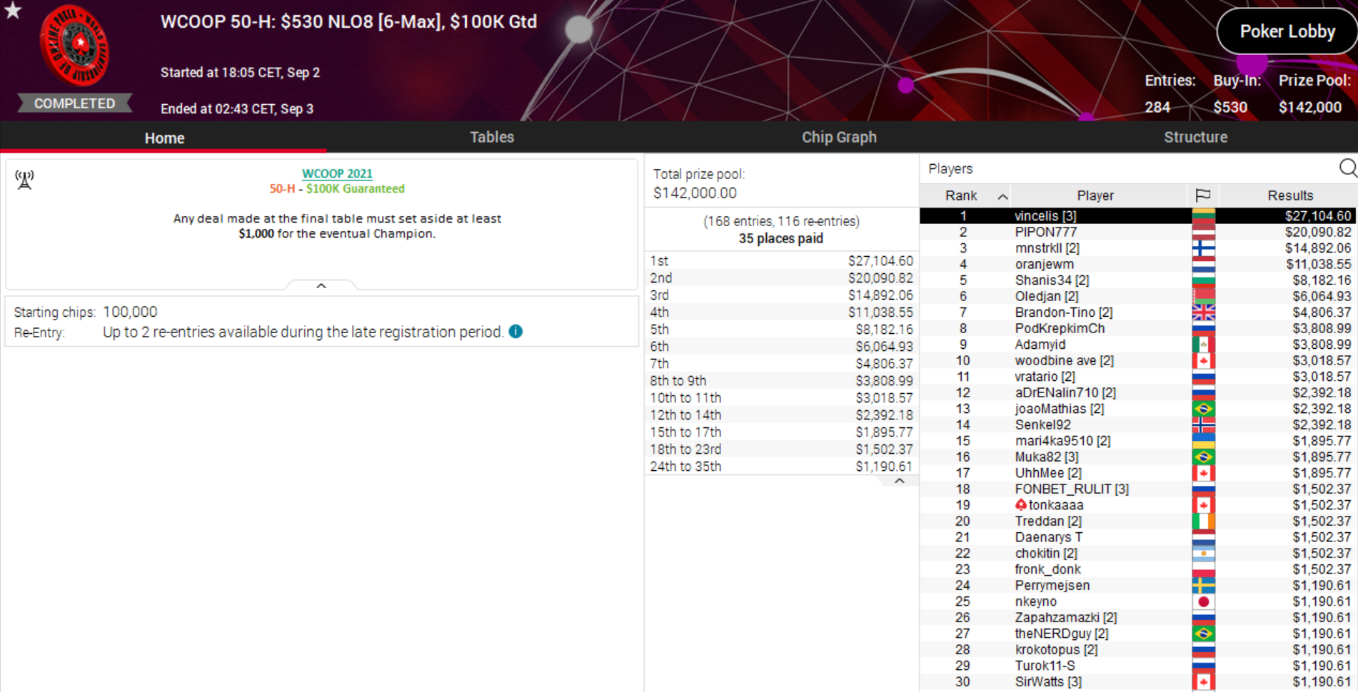 Bei der World Championship of Online Poker (WCOOP) auf PokerStars, fielen gestern insgesamt 15 Entscheidungen, außerdem wurden drei neue Events gestartet.