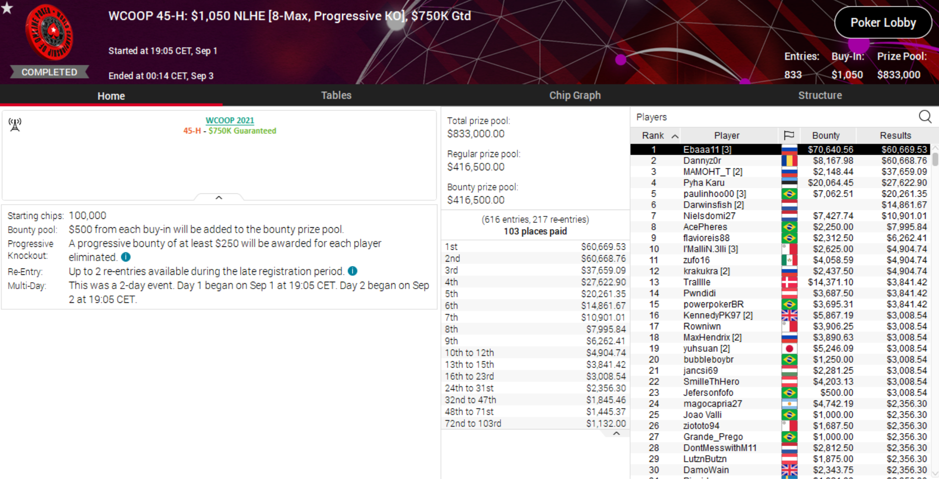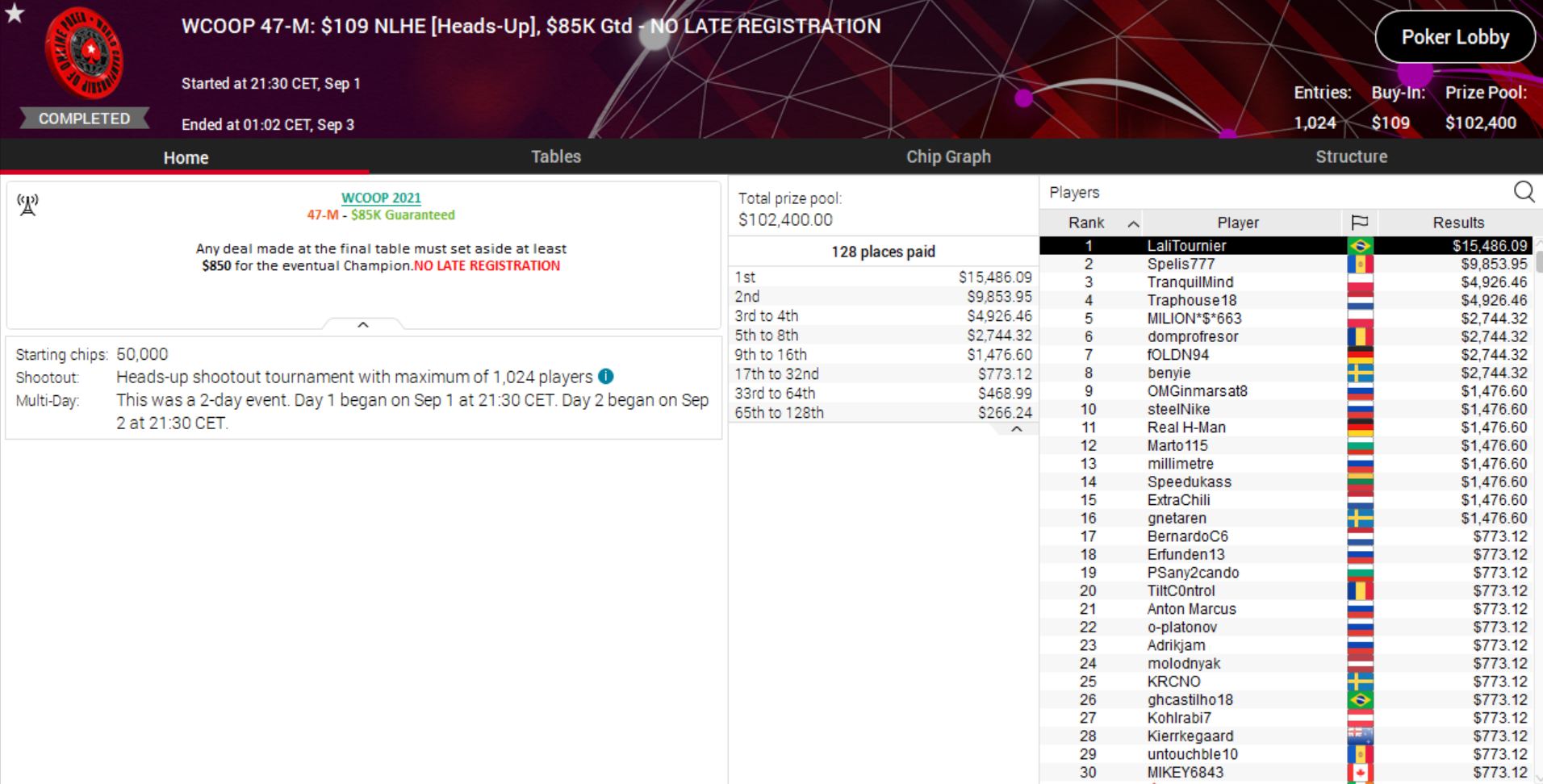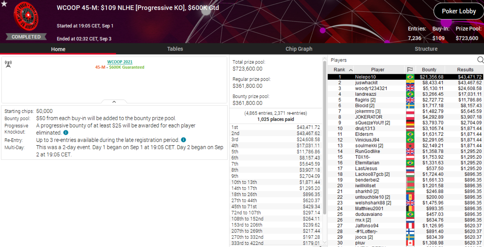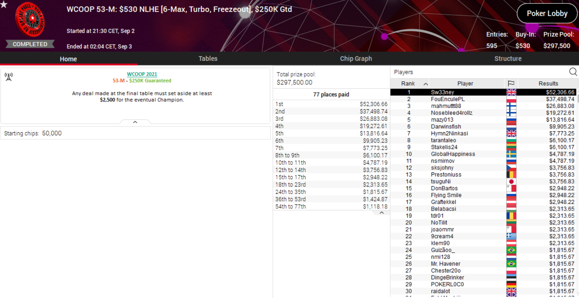 Bei der World Championship of Online Poker (WCOOP) auf PokerStars, fielen gestern insgesamt 15 Entscheidungen, außerdem wurden drei neue Events gestartet.