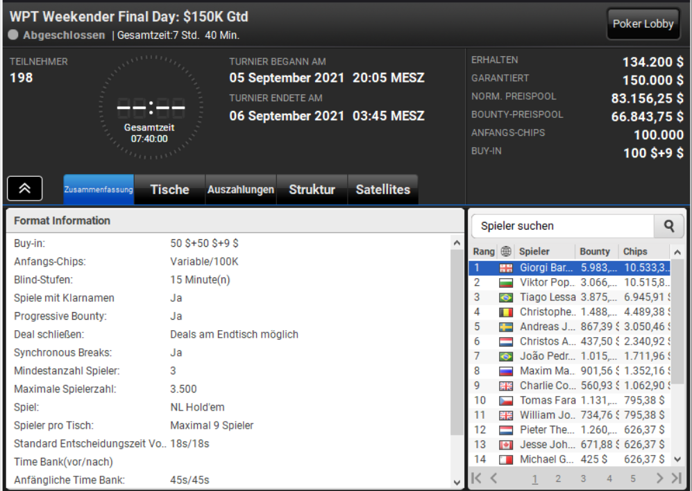 Auf partypoker war gestern Großkampftag, denn neben den normalen Sonntagsturnieren The Grand und Weekender standen auch diverse WPT Events an.