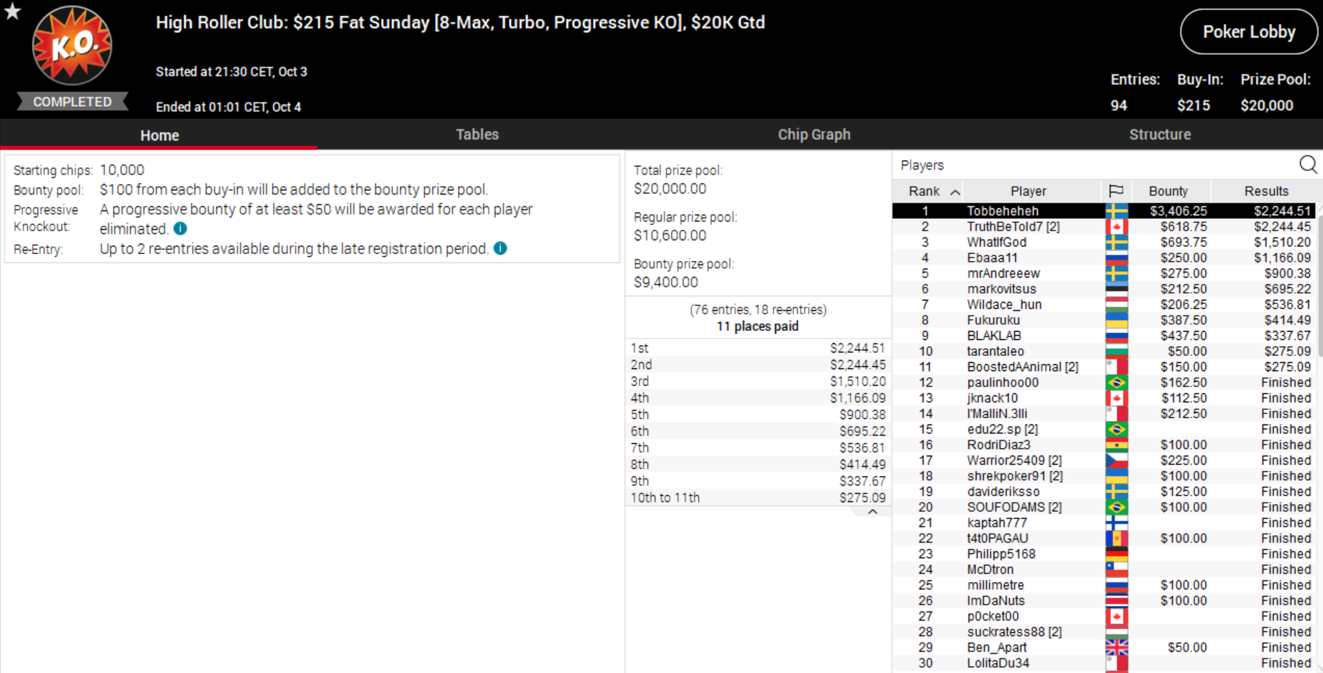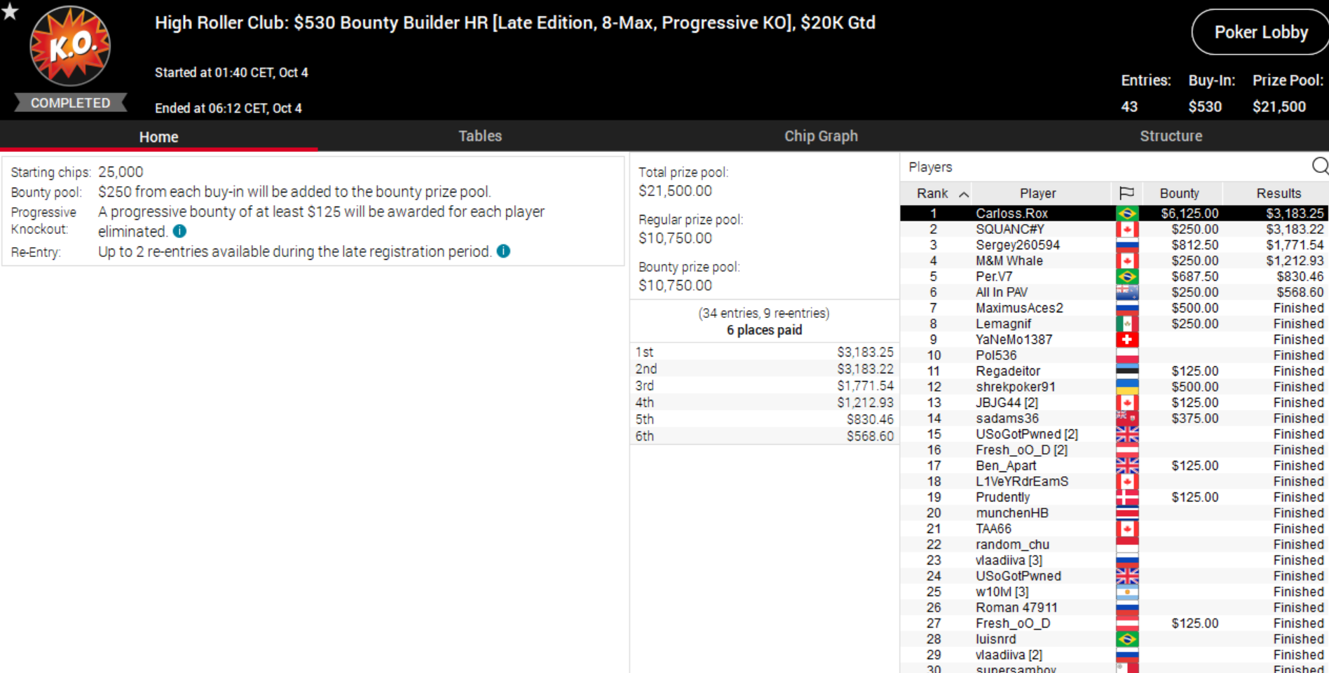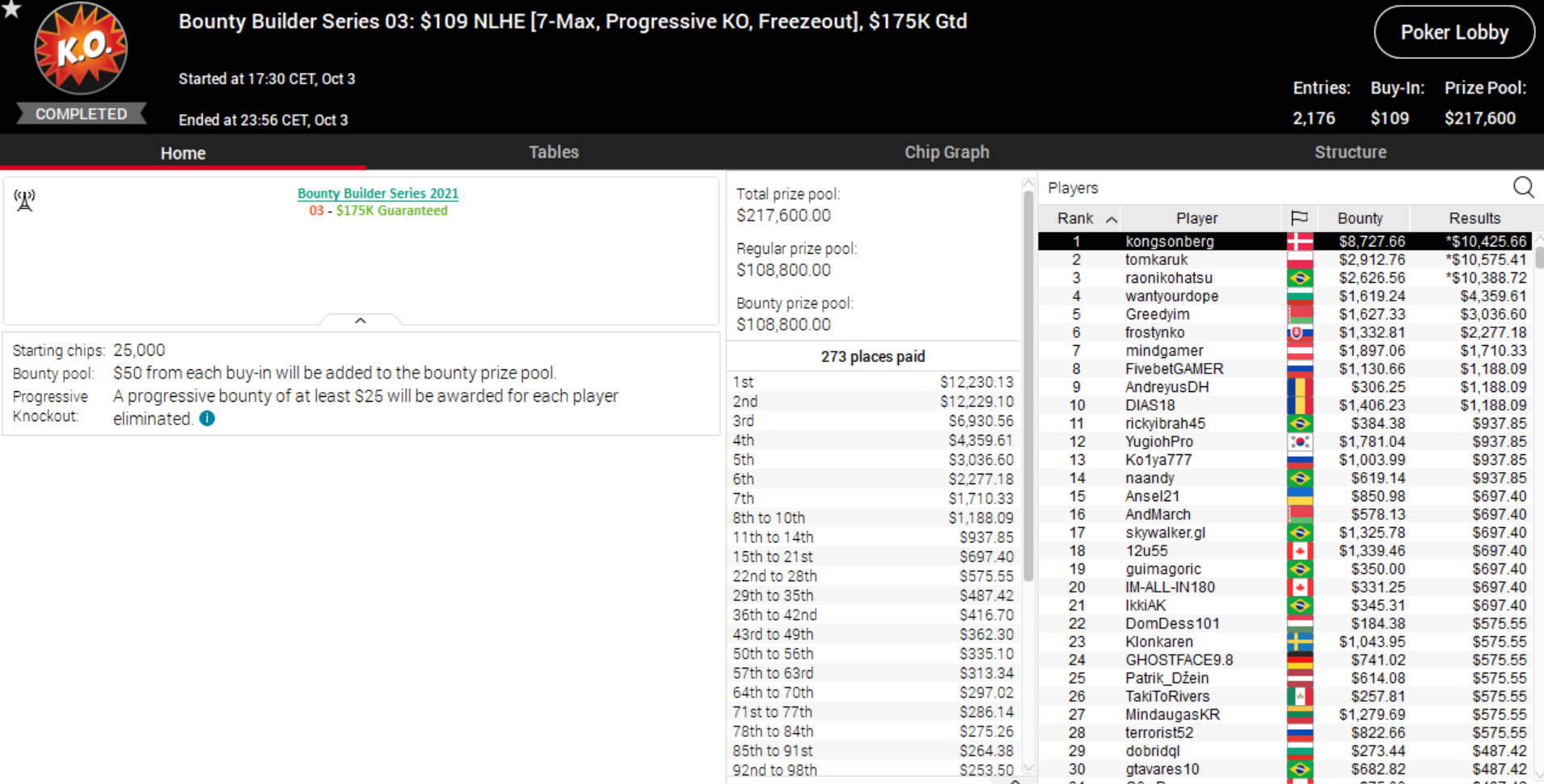 Auf PokerStars standen neben den klassischen Turnieren im High Roller Club auch die ersten elf Events der Bounty Builder Series an.