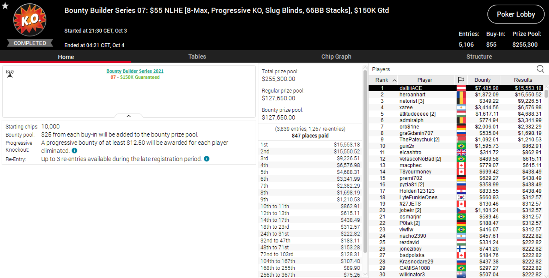Für den einzigen deutschsprachigen Sieg zum Auftakt sorgte „dalliiiACE“ bei Event #6, einem $55 NLHE PKO.