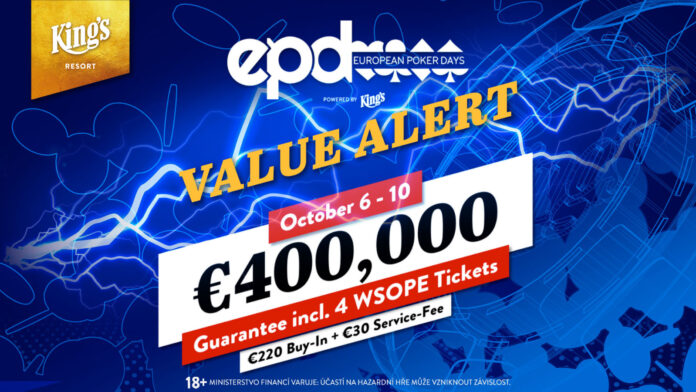 Nach dem Festival ist vor dem Festival! Im King’s Resort Rozvadov beginnen am Mittwoch, dem 6. Oktober, die European Poker Days.