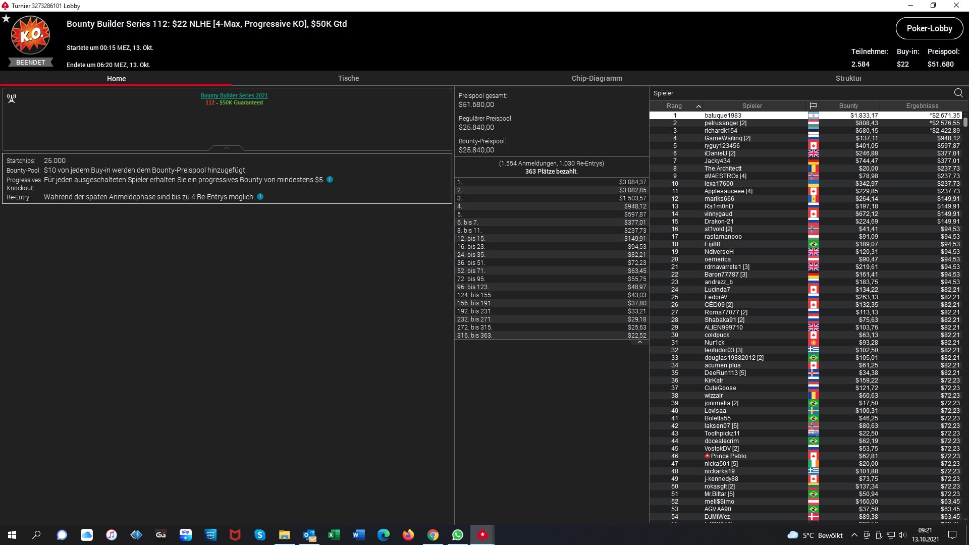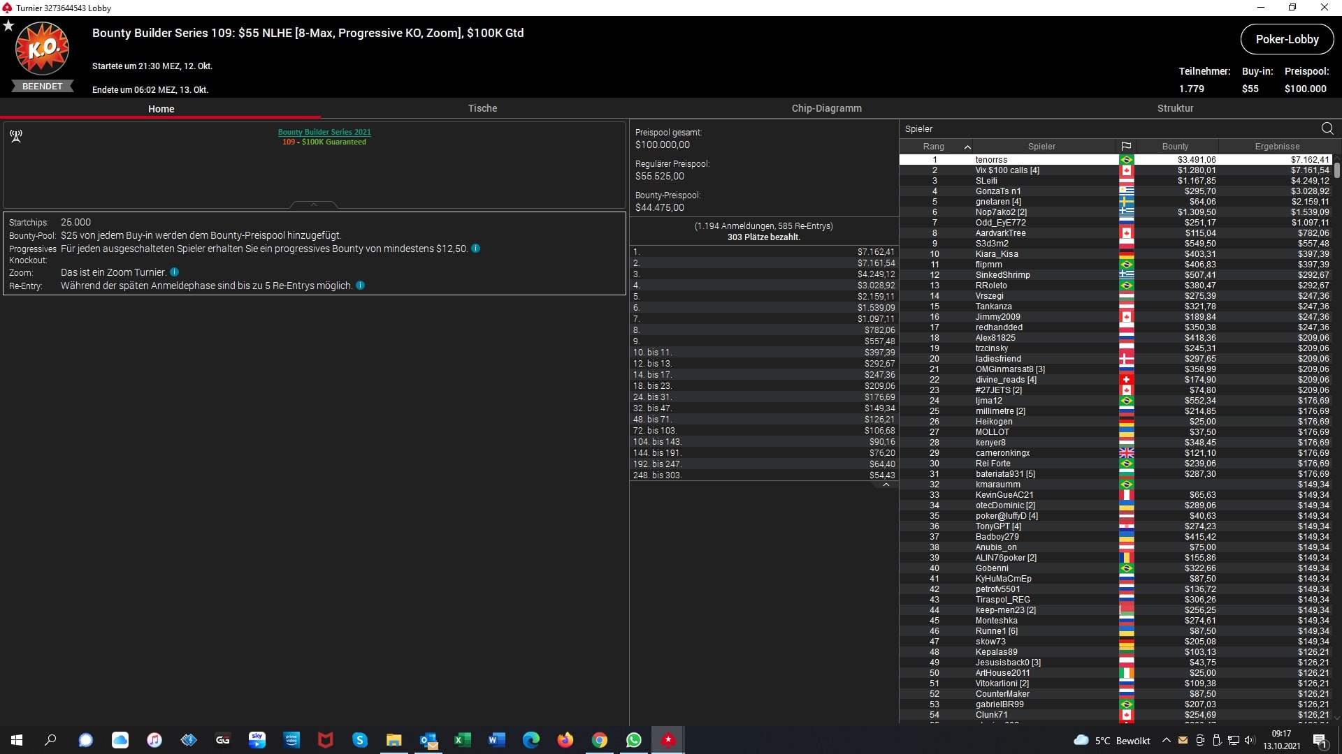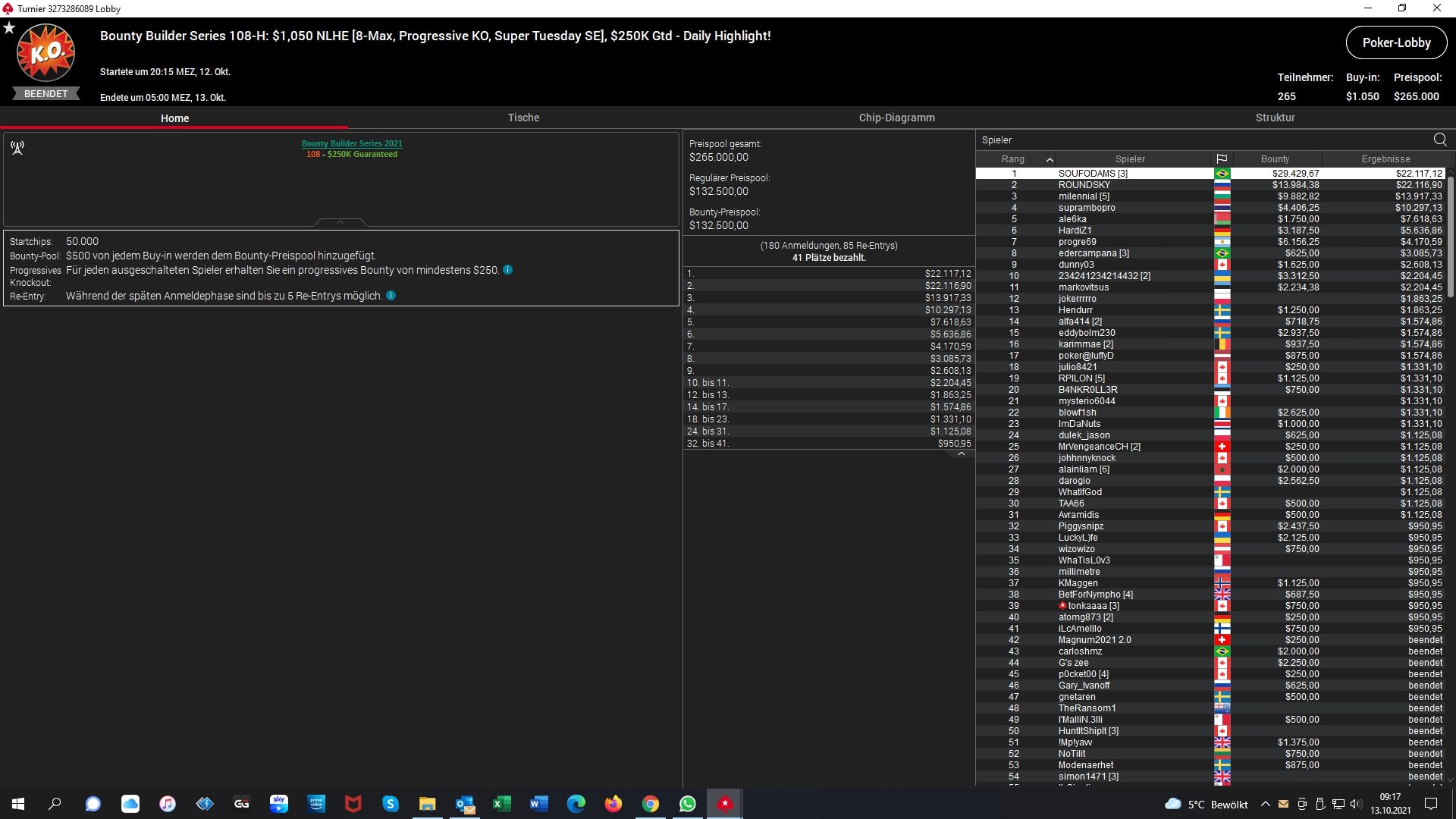 Die deutschsprachigen Teilnehmer durften sich hier über drei Medaillen freuen. Der Deutsche „Vidiciara“ konnte sich beim $11 NLHE PKO Event #111 durchsetzen und den Sieg sowie $3.223 + $2.505 Bounties abräumen. „r4bauke hh87“ (GER) sicherte sich beim $22 NLHE 6-Max PKO Event #105 den Platz 3 und $3.203 + $1.137 Bounties. Bronze gab es ebenfalls für „SLeiti“ aus Österreich beim $55 NLHE 8-Max PKO Event #109, wo er mit $4.249 + $1.167 Bounties entlohnt wurde.