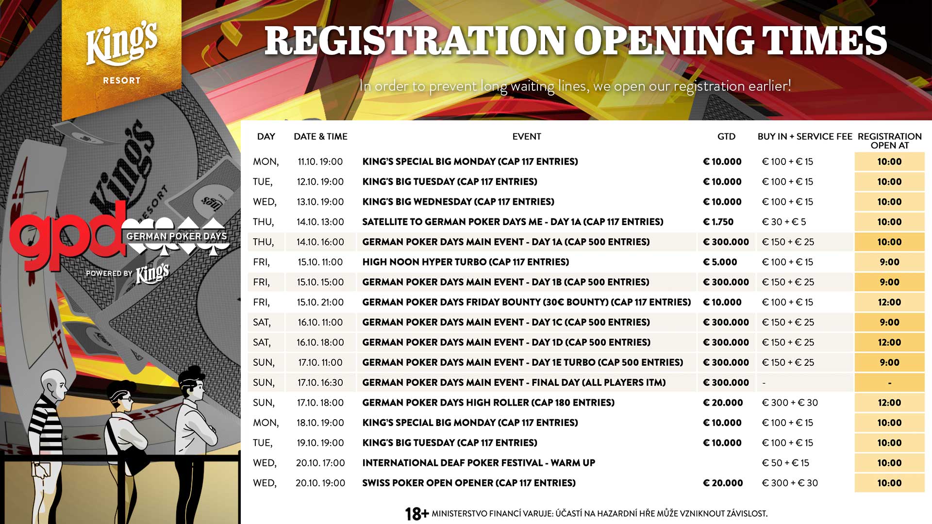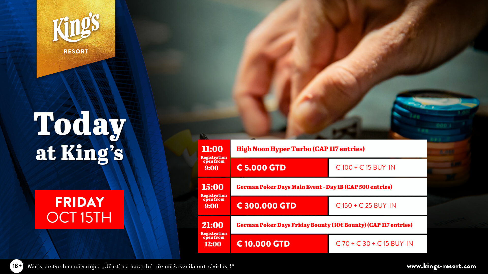 Die Oktober-Ausgabe der German Poker Days (GPD) ist gestartet und der Auftakt am Donnerstag lässt bereits erahnen, dass es am Wochenende im King’s Resort Rozvadov wieder starke Spielerzahlen erreicht werden.