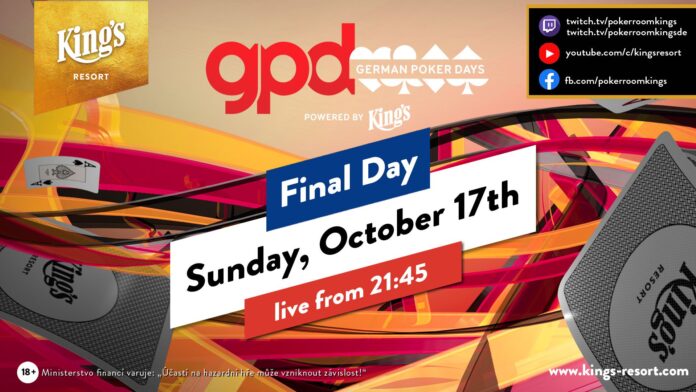 Am Sonntag gibt es ab ca. 21:45 Uhr live aus dem King’s Resort Rozvadov, den Livestream vom Finale des €150+€25 German Poker Days (GPD) Main Events. Die Action wird 30 Minuten zeitversetzt mit Hole Cards übertragen und auf Deutsch von Stefan Hachmeister kommentiert.