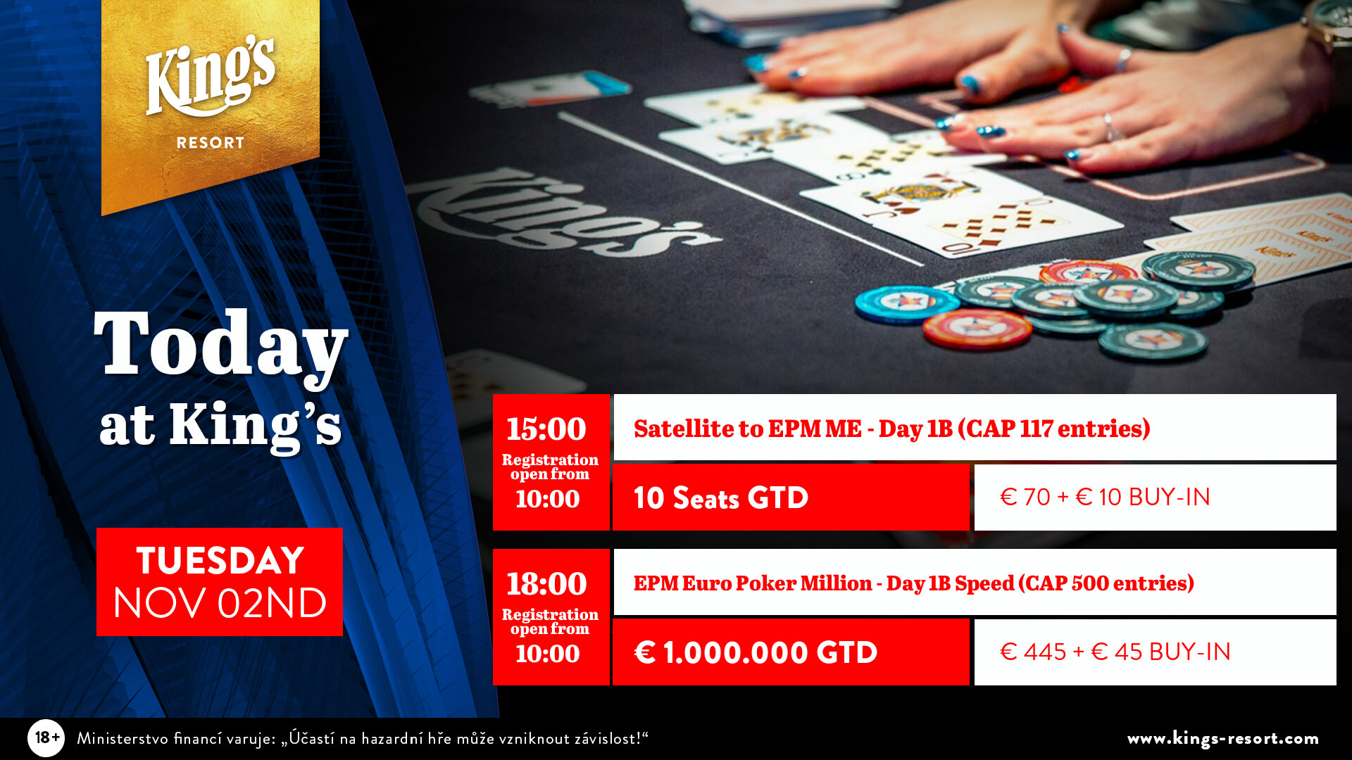Heute geht es im King’s zunächst um 15 Uhr mit einem €70+10 Sattelite weiter, ehe um 18 Uhr Starttag 1B (Speed) beim EPM Main Event beginnt.