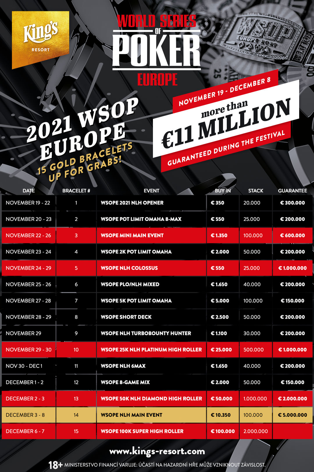 So richtig spannend wird es im King‘s dann aber wieder am kommenden Freitag, wenn der Startschuss zur World Series of Poker Europe (WSOPE) fällt.