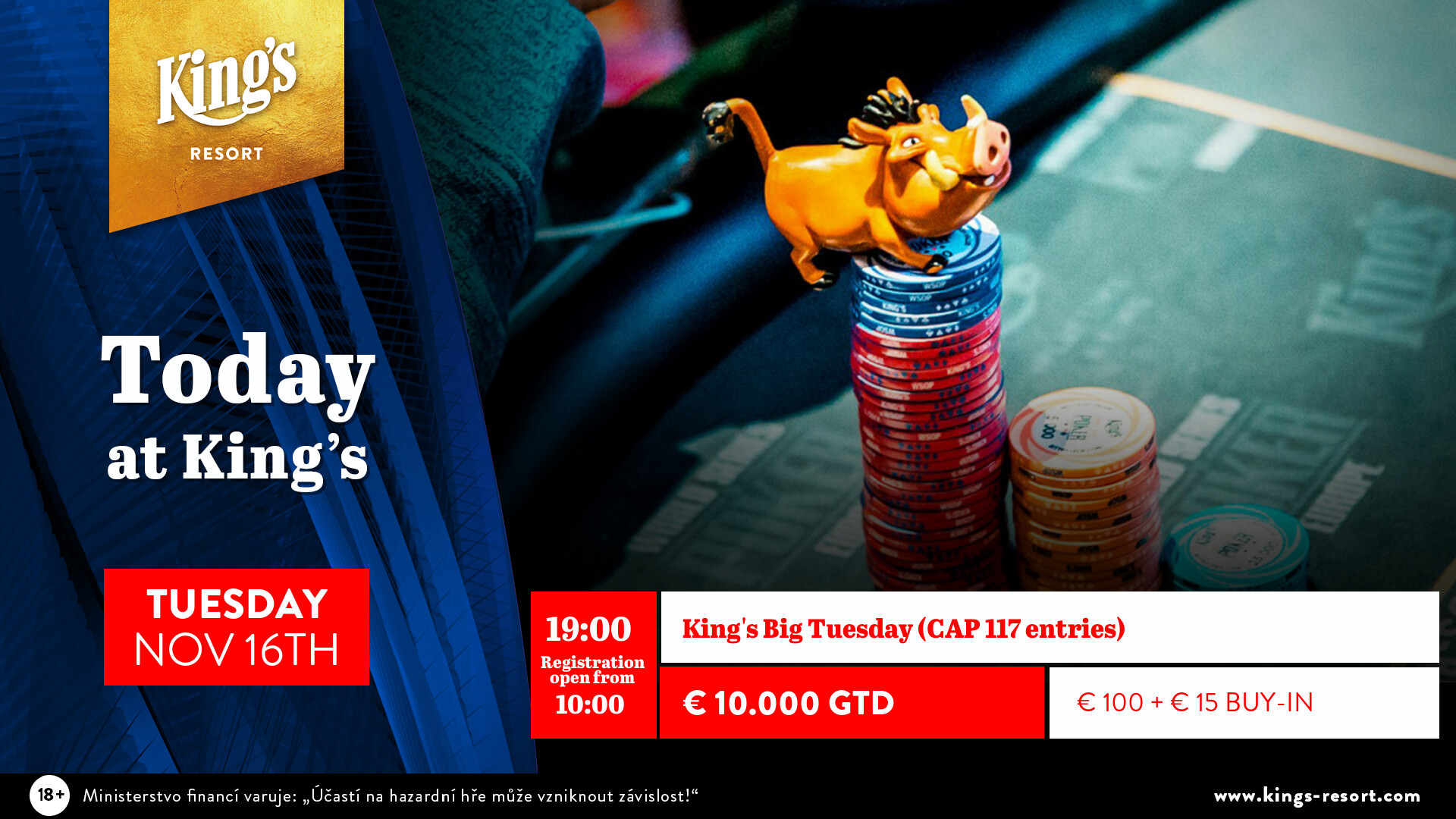 Heute steht im King’s um 19 Uhr das beliebte €115 Big Tuesday mit €10.000 GTD an. Für dieses Turnier sind maximal 117 Entries zugelassen.