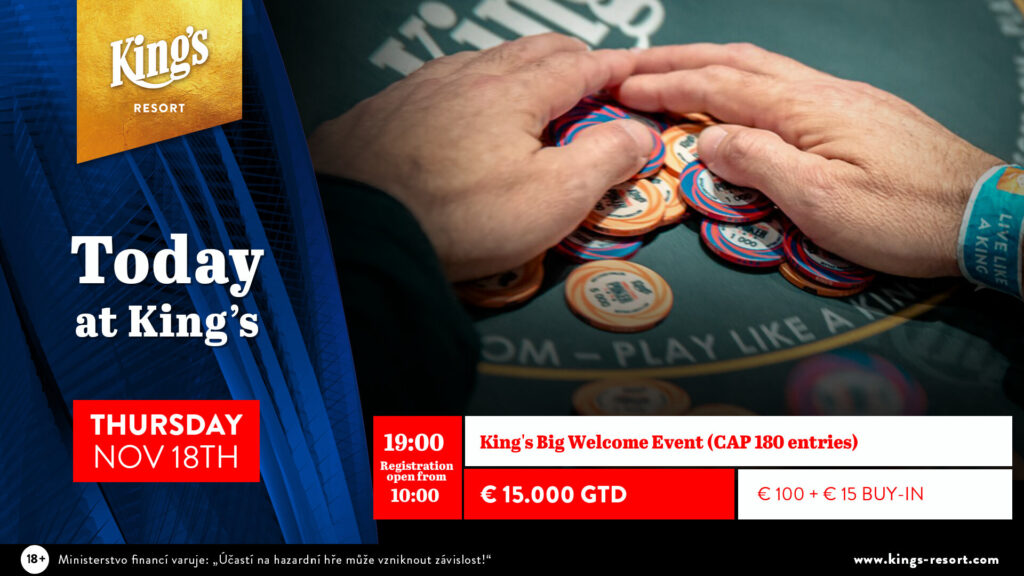 Ansonsten werden im King’s Resort in Rozvadov rund um die Uhr spannende Cash Games angeboten. Hier geht der Spaß bereits bei Blinds €1/€3 THNL oder €2/€2 PLO und einem Minimum Buy-In von €100 los.