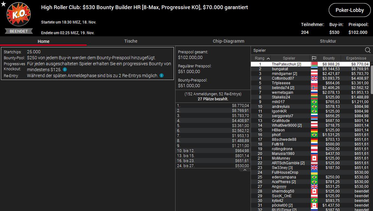 Deutlich besser waren die Ergebnisse der DACH-Spieler im High Roller Club.
