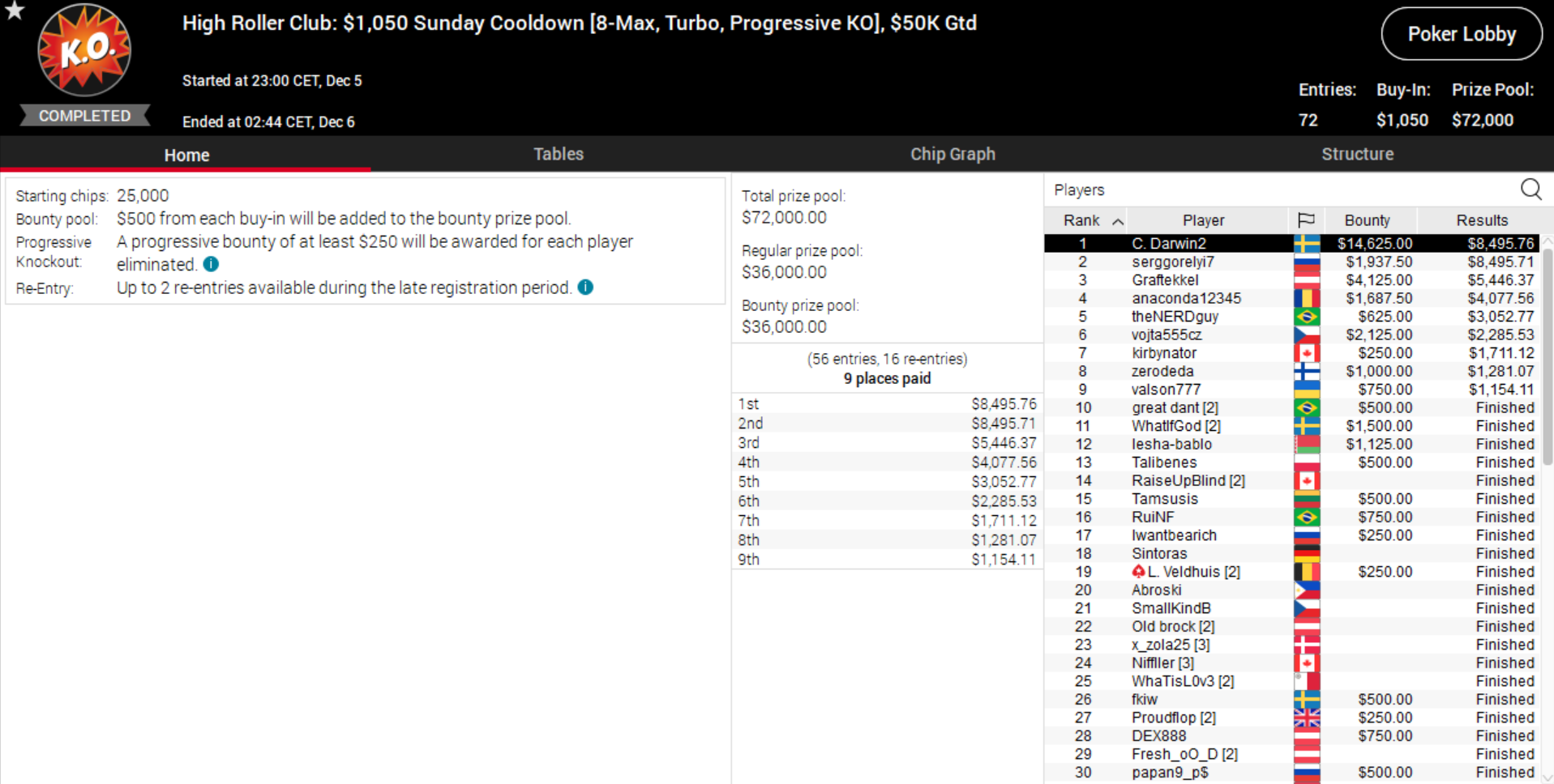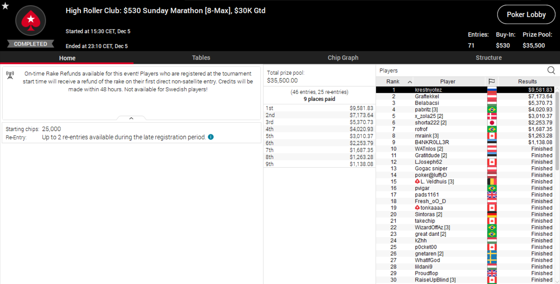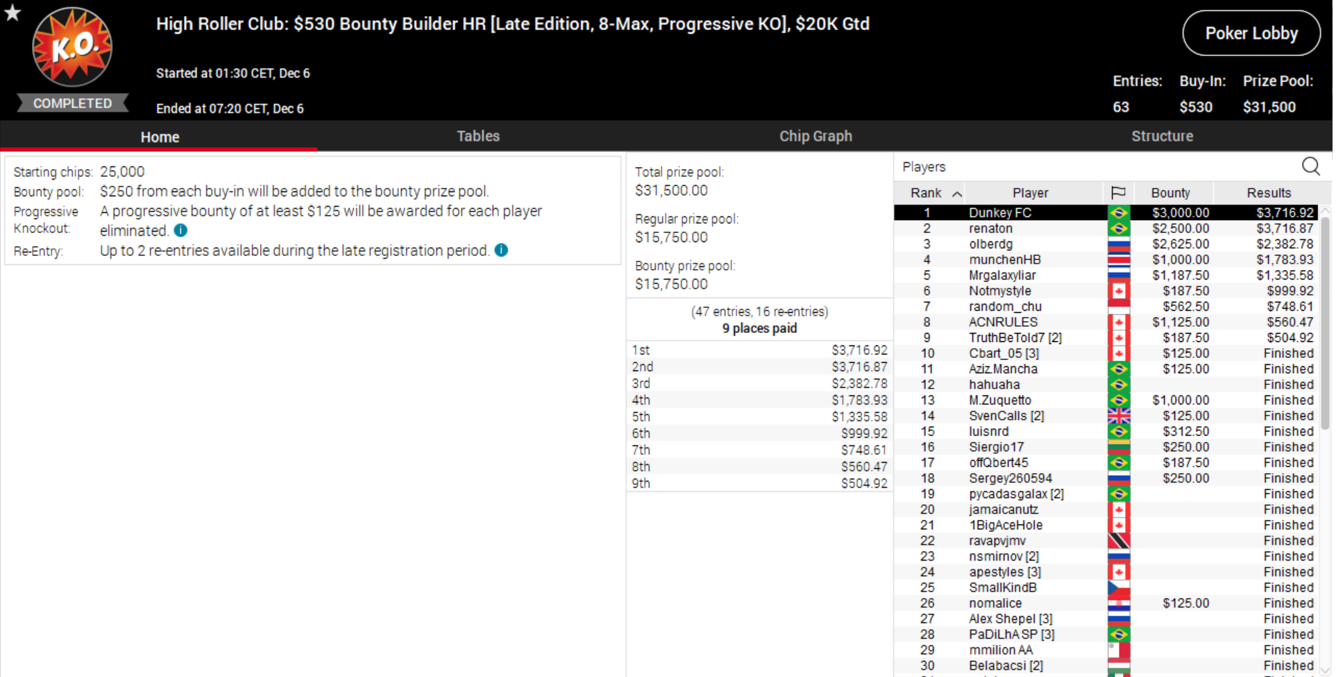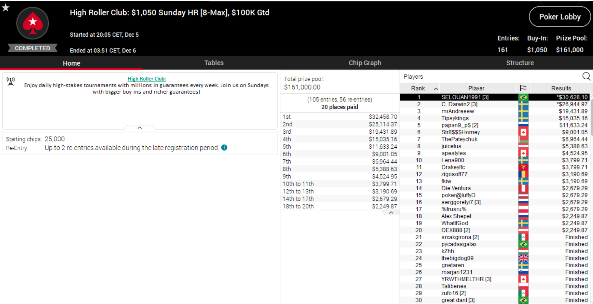 Bei den Turnieren des High Roller Club schnitt die DACH-Fraktion dieses Mal ungewöhnlich schlecht ab.