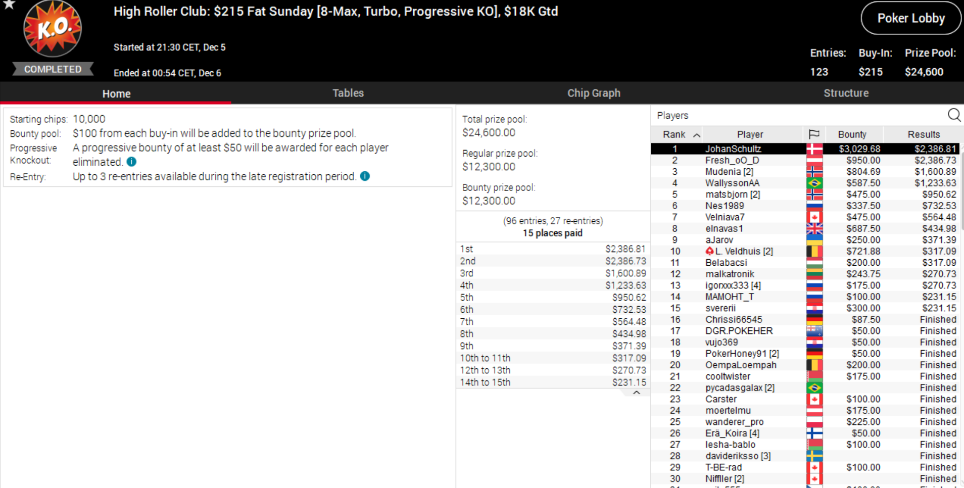 Es sprang nur ein Platz auf dem Treppchen heraus, den Jens „Fresh_oO_D“ Lakemeier beim $215 Fat Sunday holte. Als Belohnung gab es rund $3.400 Preisgeld.
