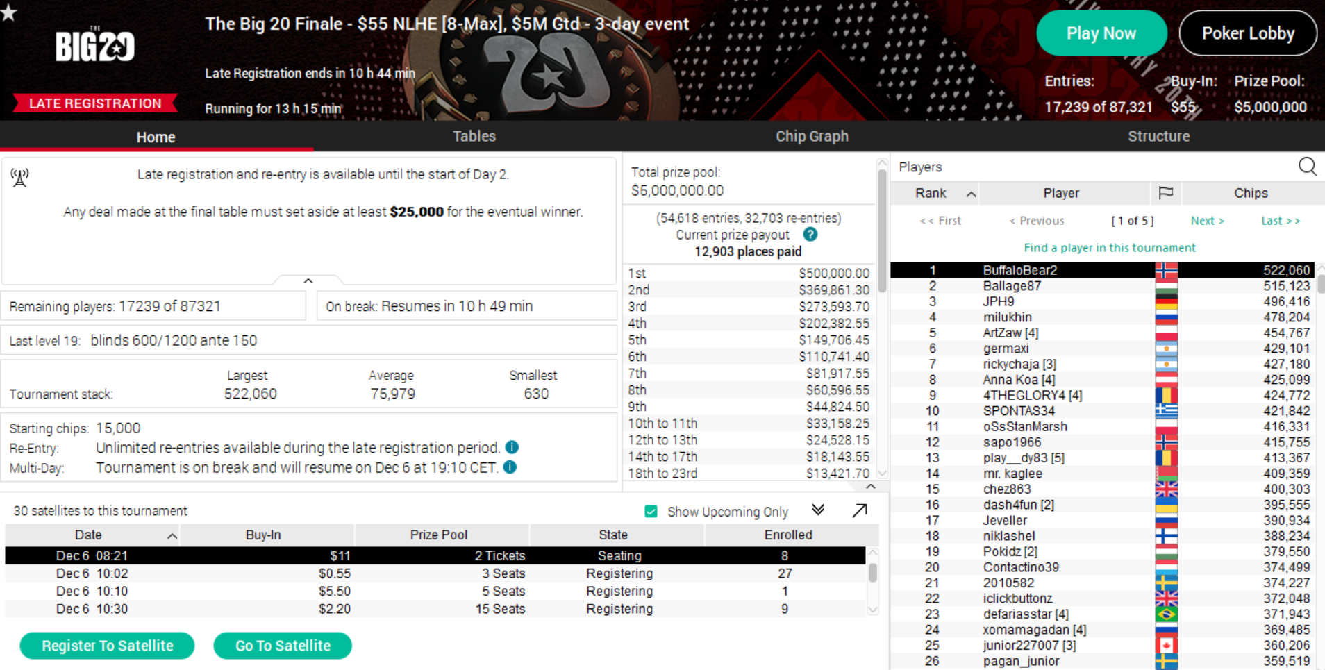 Auf drei Tage angesetzt ist das Big 20 Finale der Rewind Series und mit einer Garantie von $5 Millionen bei einem Startgeld von $55 hat sich PokerStars weit aus dem Fenster gelehnt.