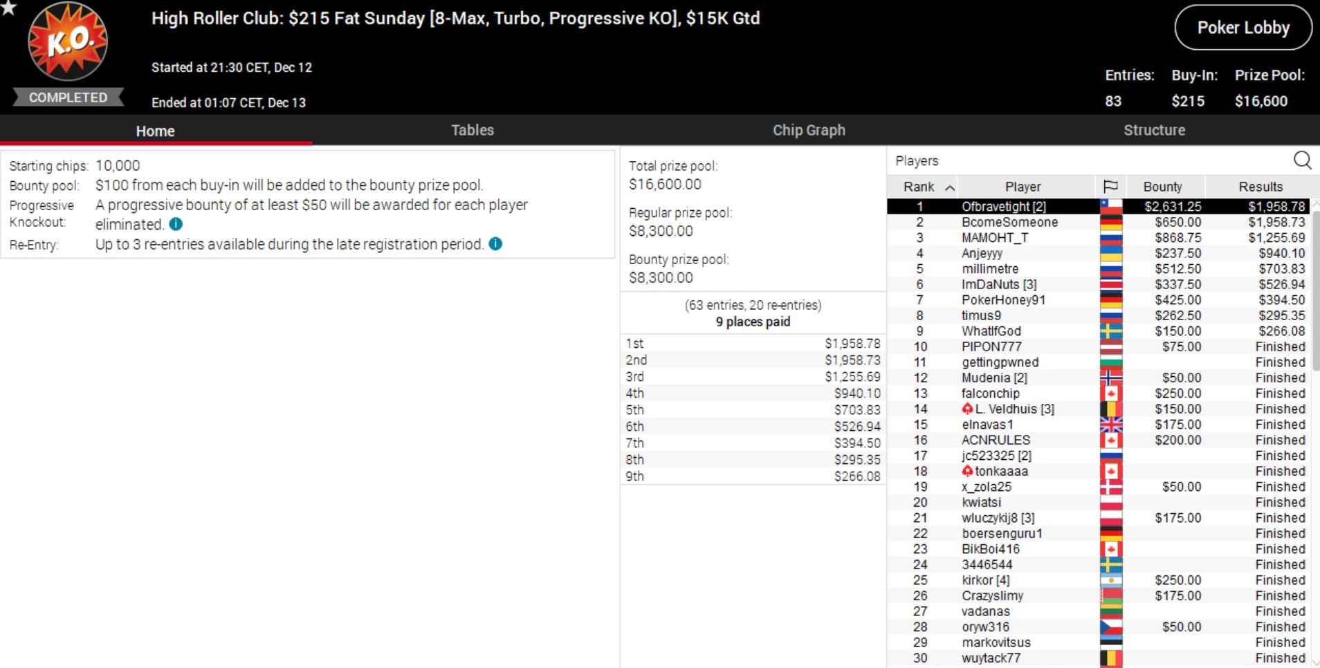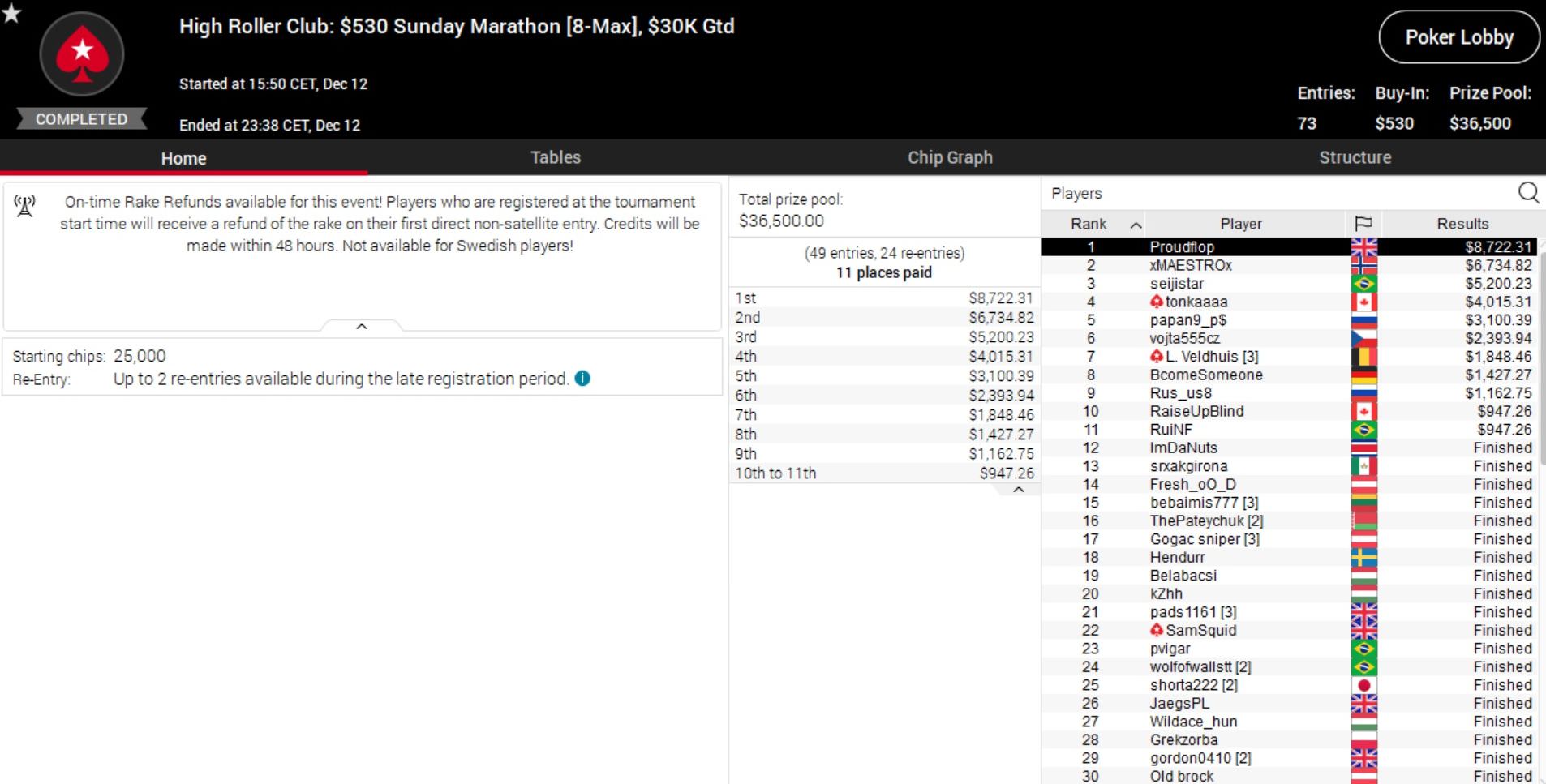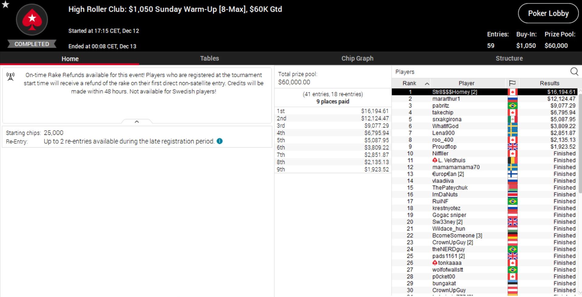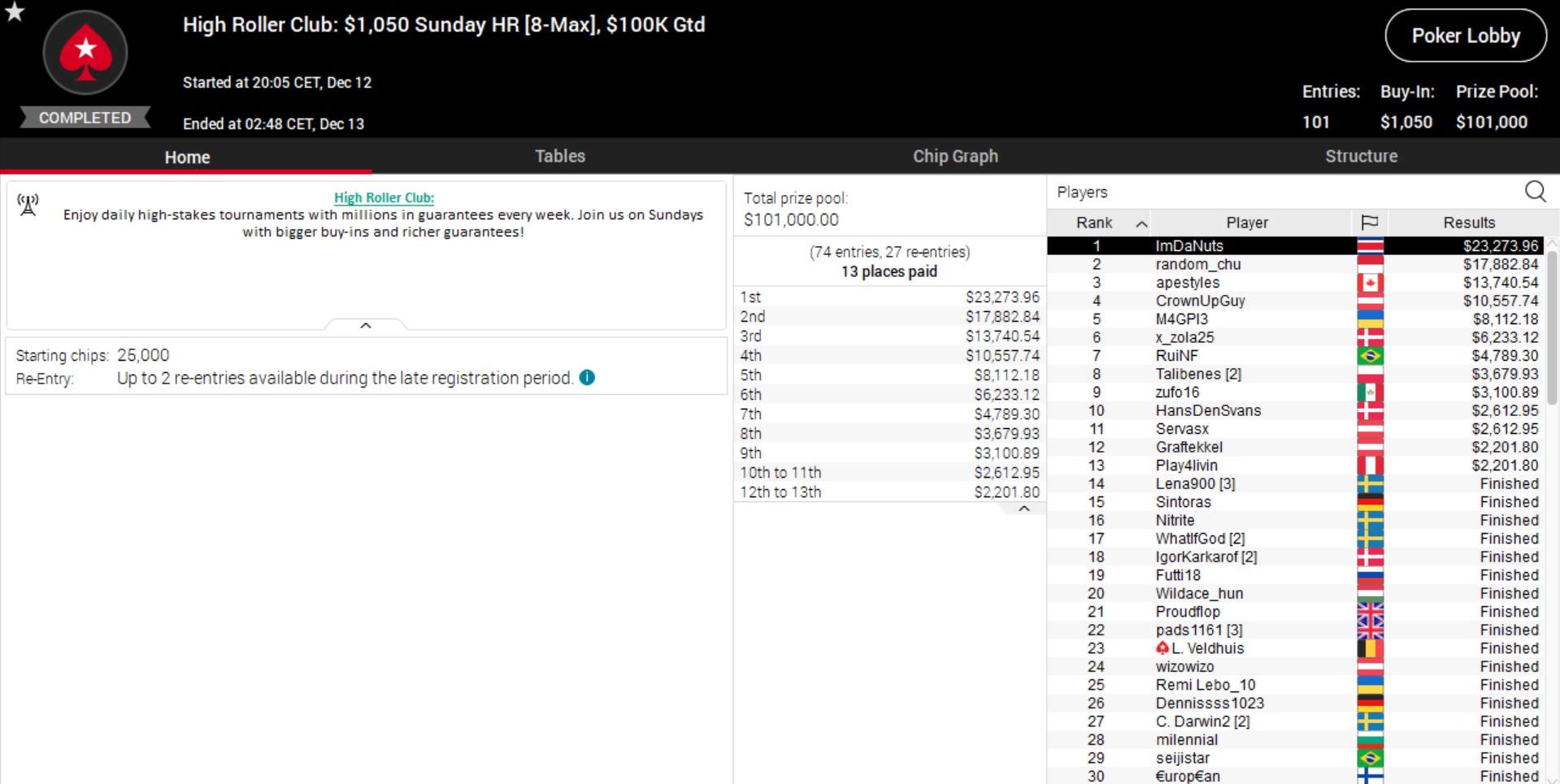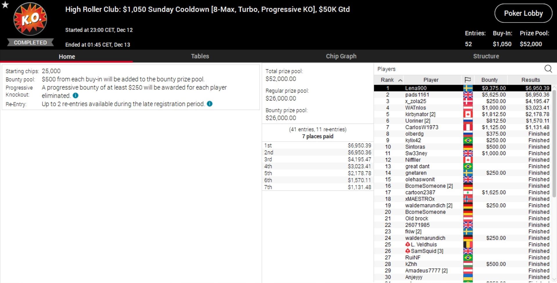 Beim 1.050 Cooldown erzielte Christian „WATnlos“ Rudolph den vierten Platz und kassierte rund $4.000 und beim $1.050 Supersonic erspielte sich „Old brock“ Rang 2 und erhielt dafür mehr als $12.000 Preisgeld.