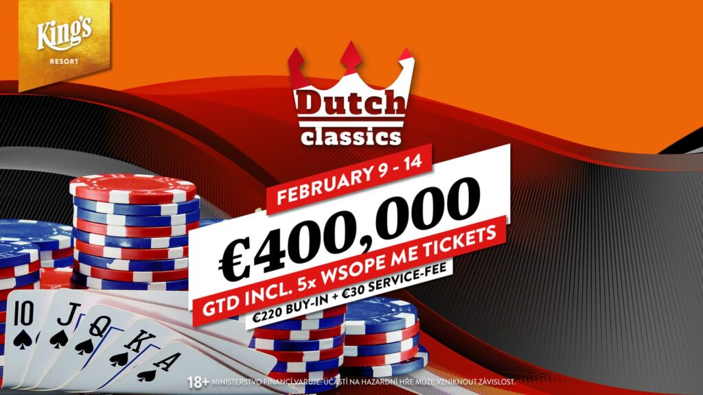 Dann kommen die Dutch Classics zu ihrer ersten Ausgabe im neuen Jahr 2022. Ab 09. Februar gibt es €400.000 für schmale €220+30 Buy-In und jede Menge Spieler aus den Niederlanden und den Nachbarländern werden erwartet.Bei den German Poker Days im King’s Resort kostet die Teilnahme nur €174+25 und bleibt damit unter €200. Dafür gibt es €300.000 GTD und jede Menge Community-Action im King’s!