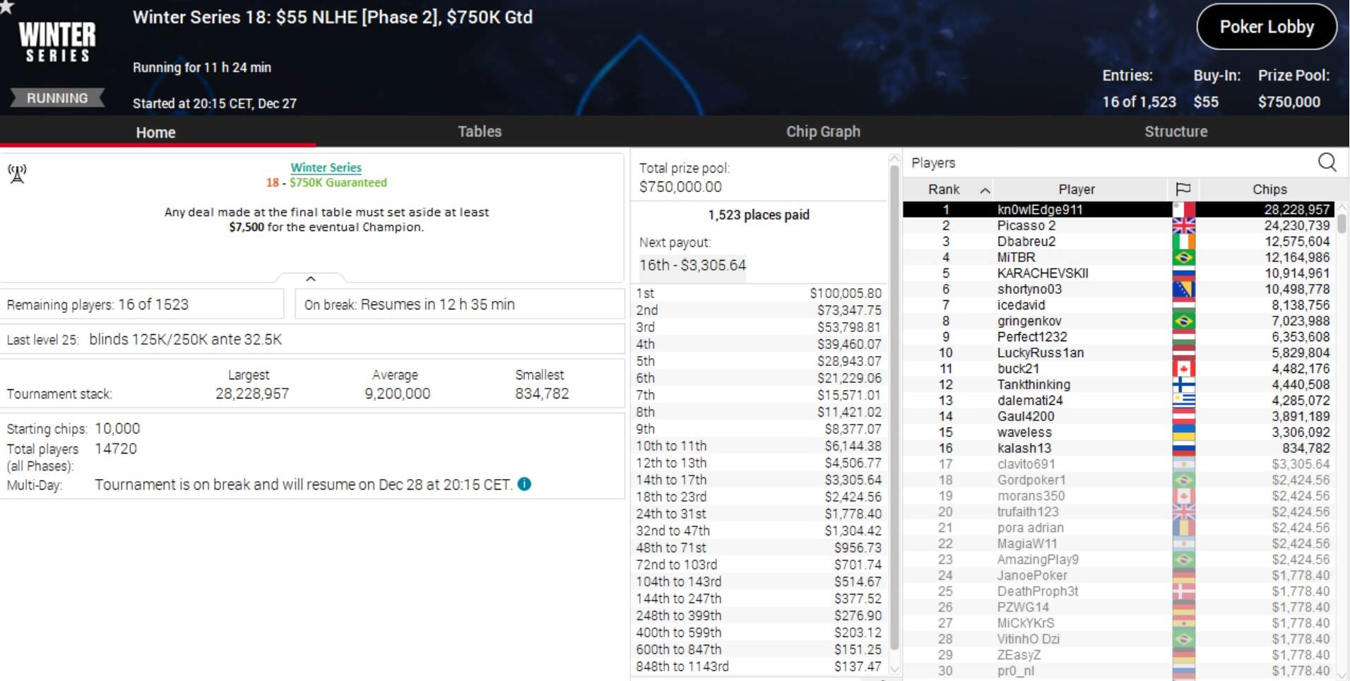 Auf PokerStars standen gestern einige Events der Winter Series an, außerdem wurden vier Turniere im High Roller Club ausgetragen.
