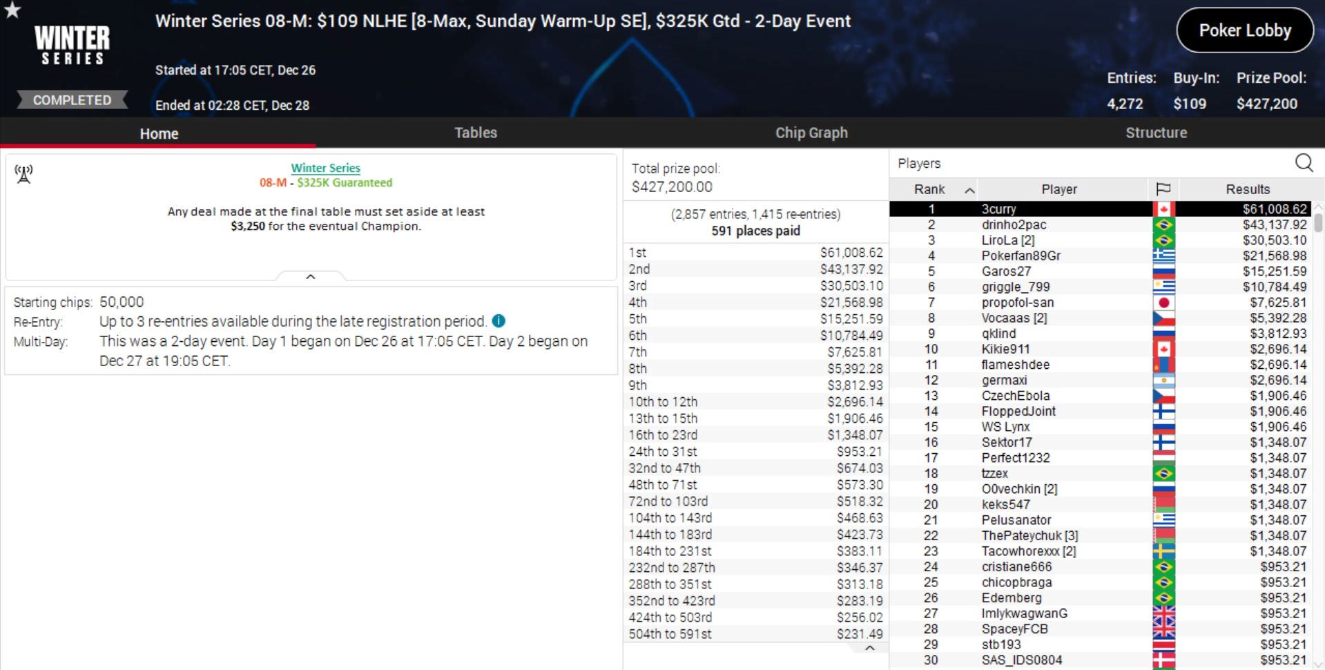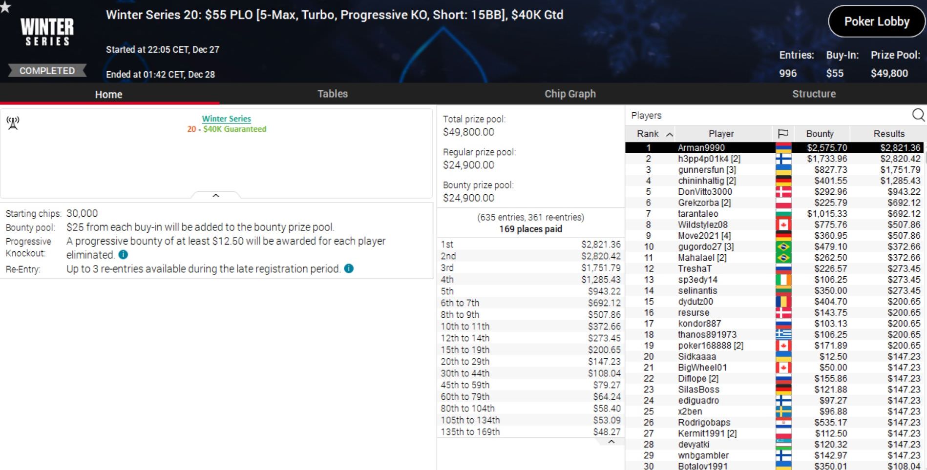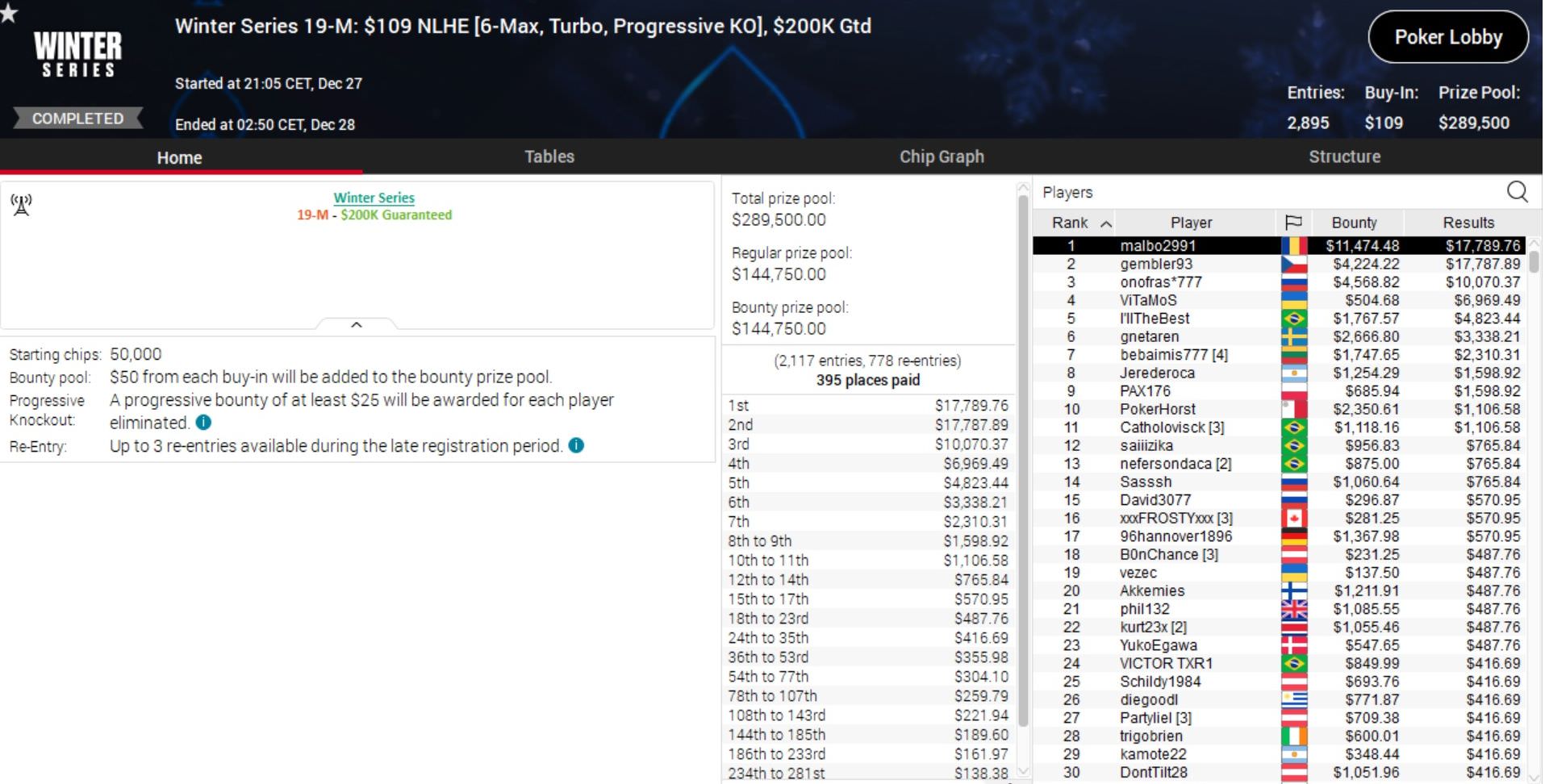 Ansonsten fiel die deutschsprachige Bilanz bei der Winter Series eher mau aus. Dafür holten Ole „wizowizo“ Schemion und Markus „playboy99999“ Prinz zwei Top-Platzierungen im High Roller Club.