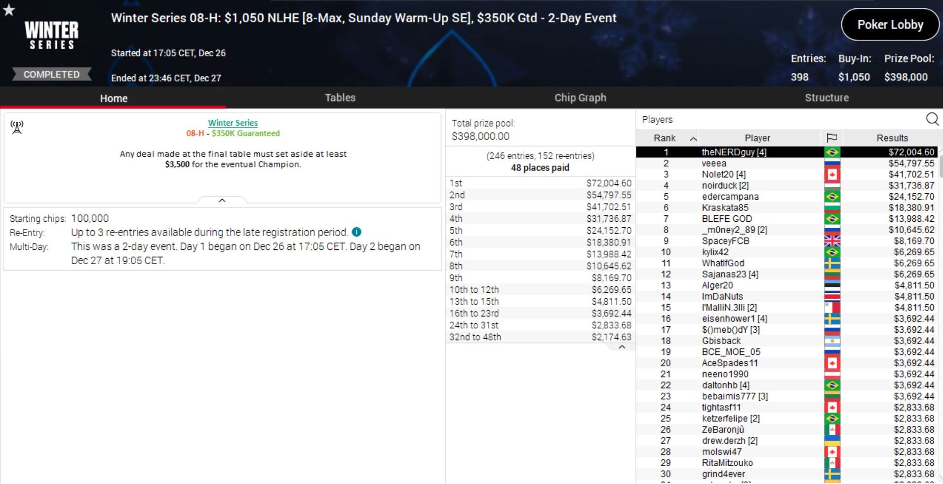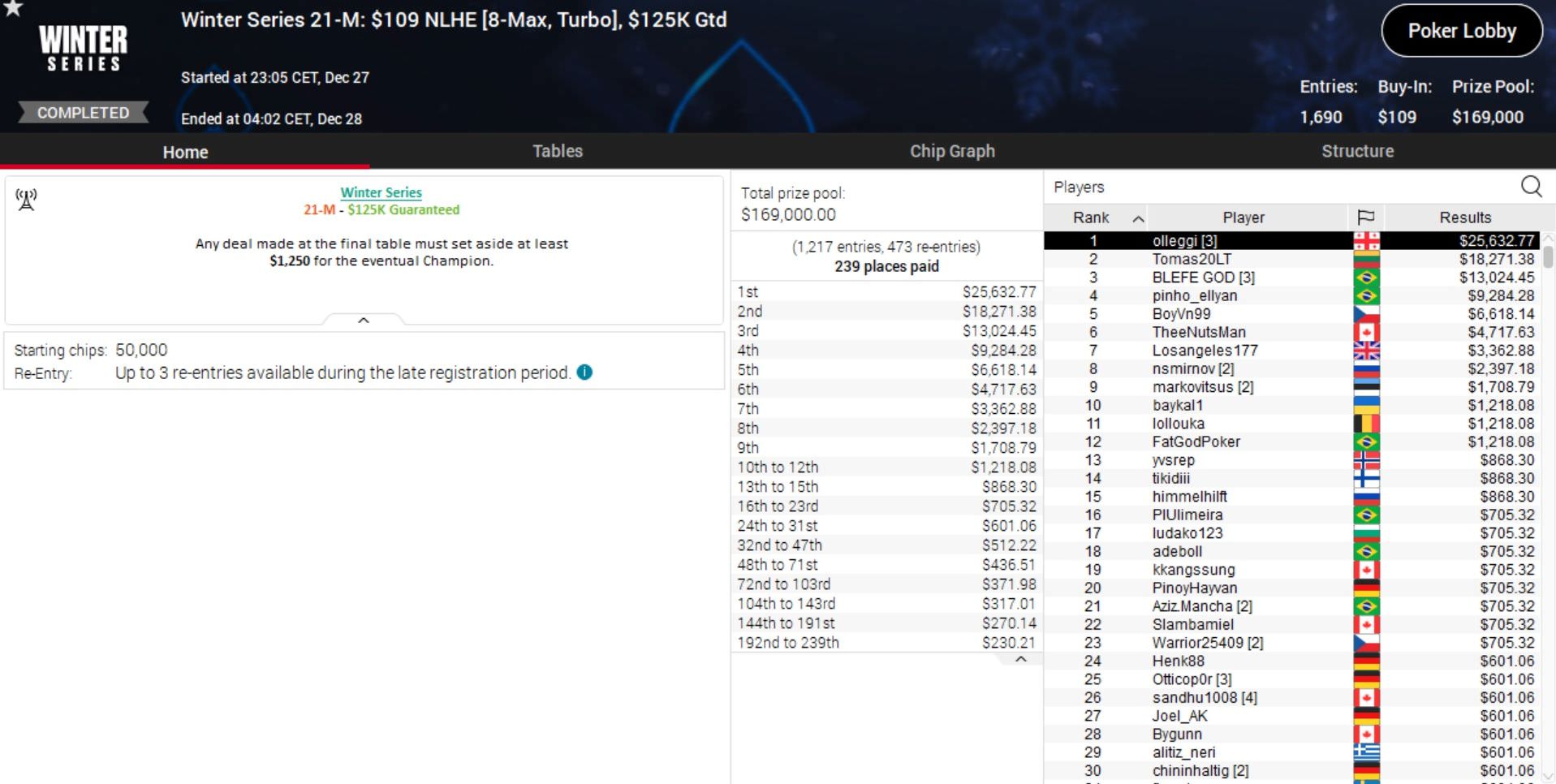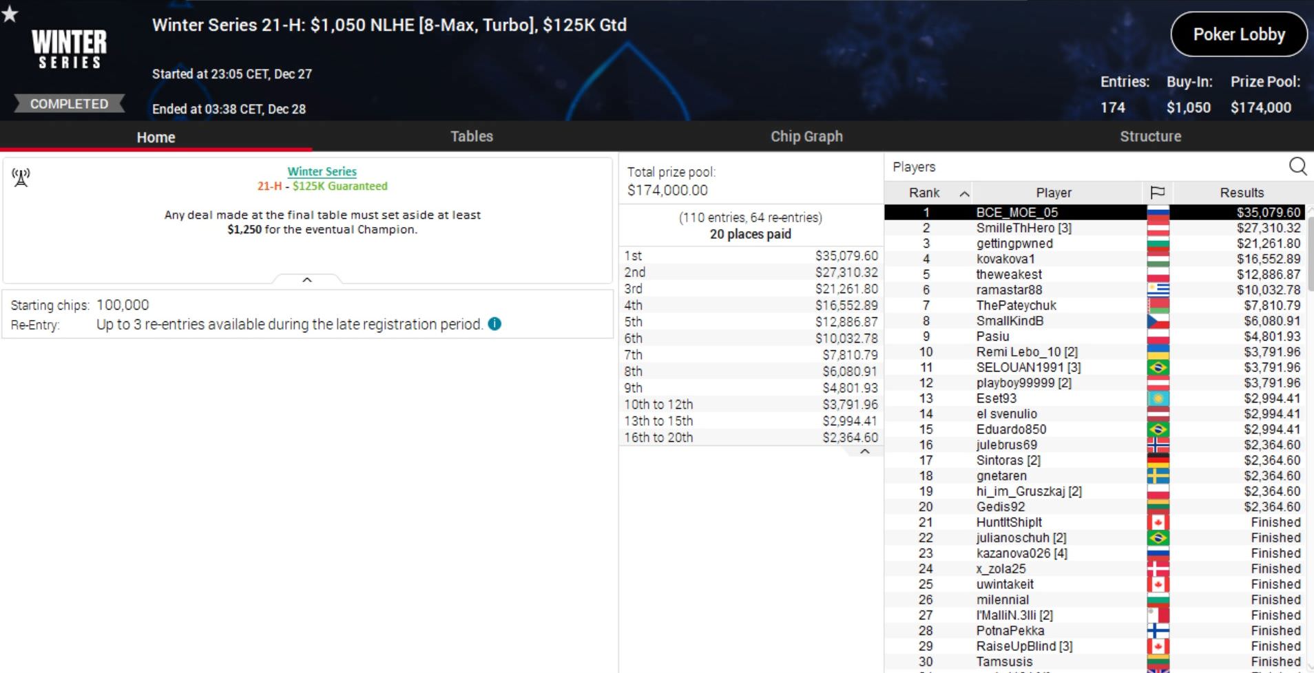 Ansonsten fiel die deutschsprachige Bilanz bei der Winter Series eher mau aus. Dafür holten Ole „wizowizo“ Schemion und Markus „playboy99999“ Prinz zwei Top-Platzierungen im High Roller Club.