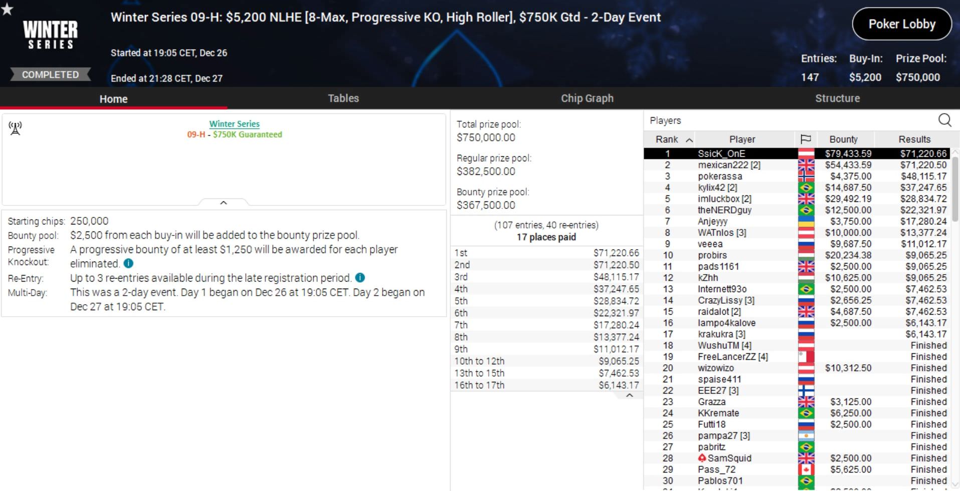Für das ganz dicke Ausrufezeichen aus deutschsprachiger Sicht sorgte Claas „SsicK_OnE“ Segebrecht. Im Finale des Winter Series Event 9-H, einem 5k PKO High Roller, setzte er sich gegen seine acht Konkurrenten durch und nahm $150.000 Preisgeld mit.