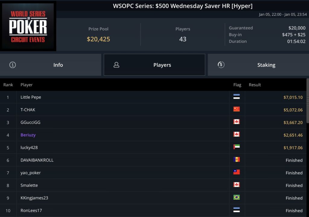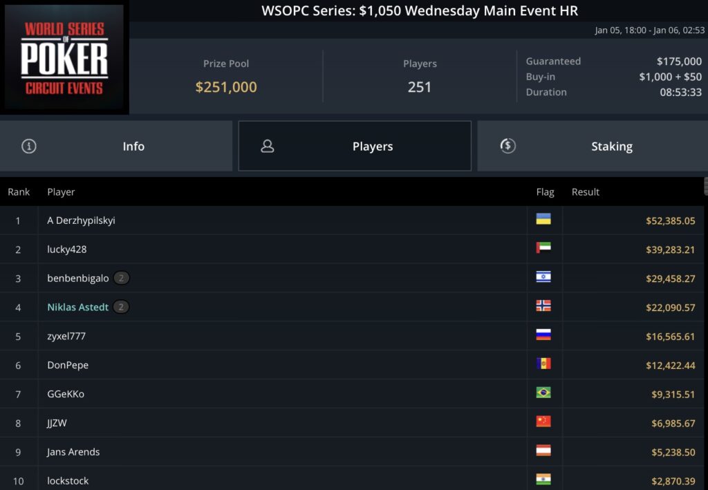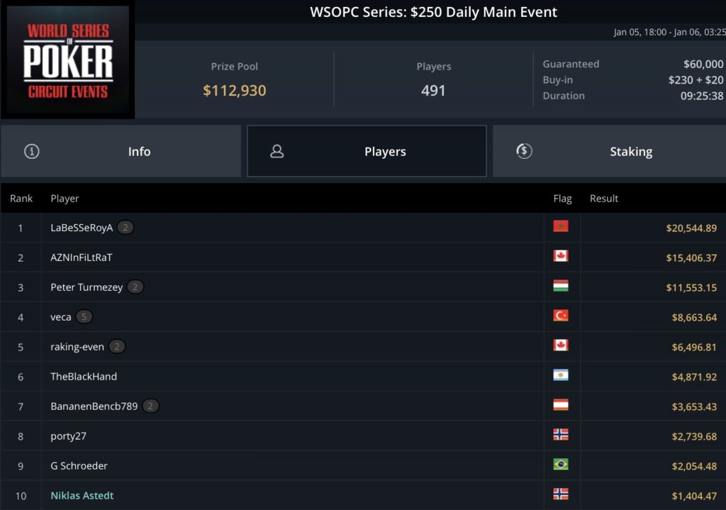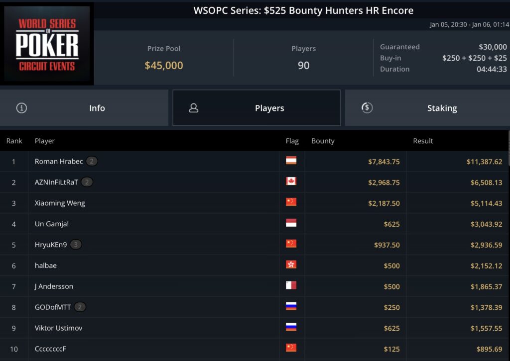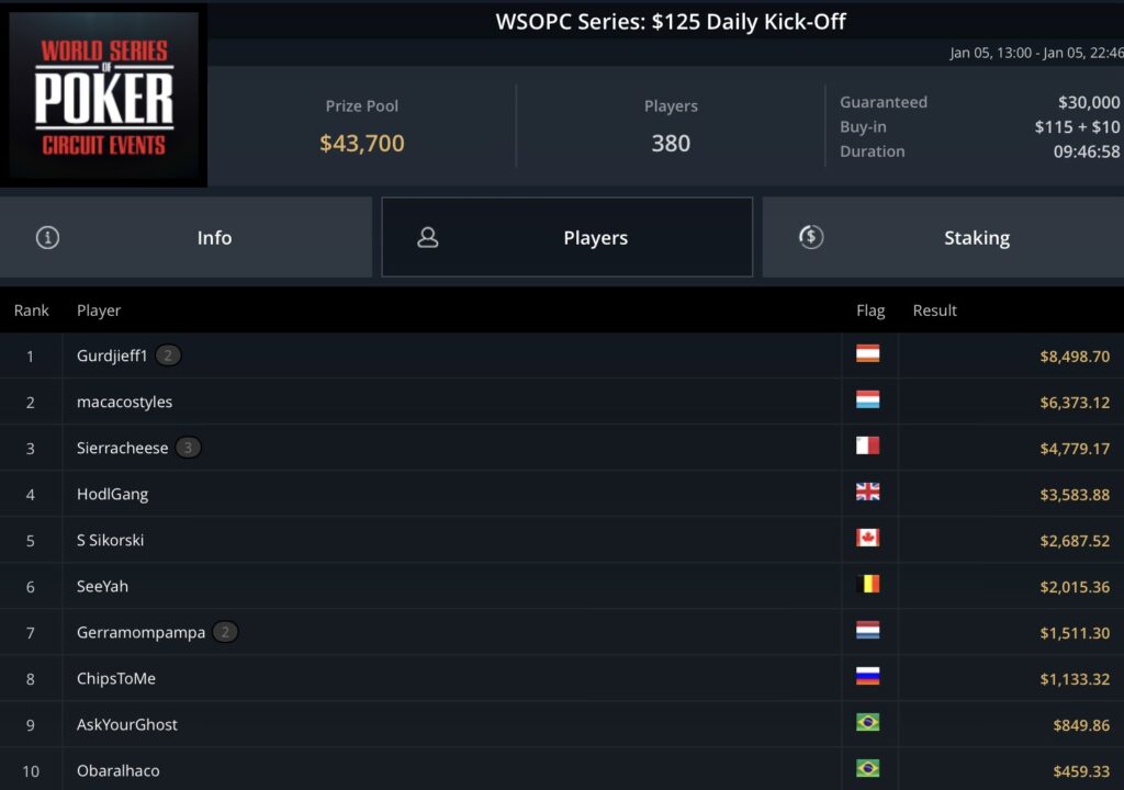 Der Online-Stopp des World Series of Poker Circuits findet derzeit auf GGPoker statt. Hier gibt es jeden Tag jede Menge Turniere in verschiedenen Varianten – hier die wichtigsten Ergebnisse von gestern!
