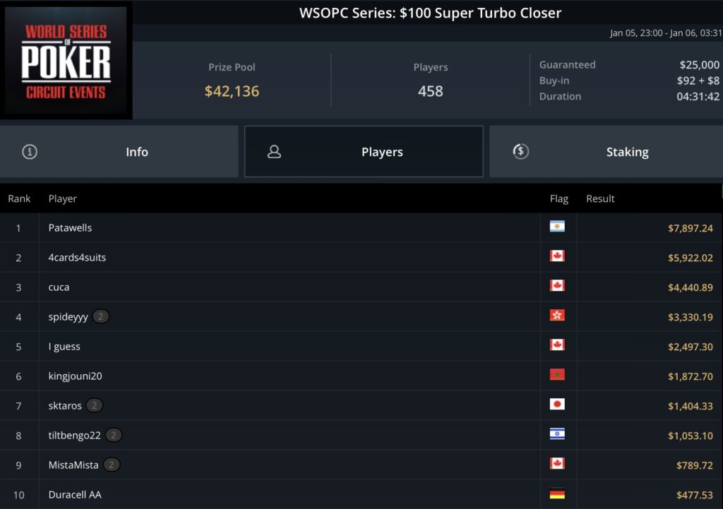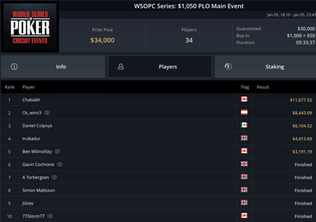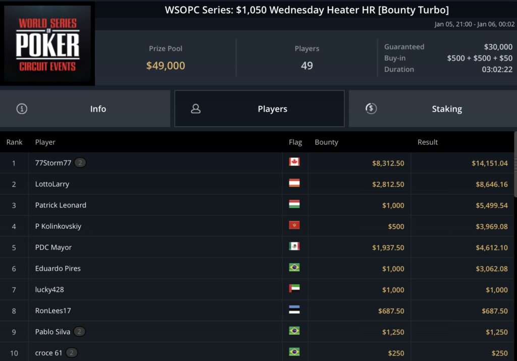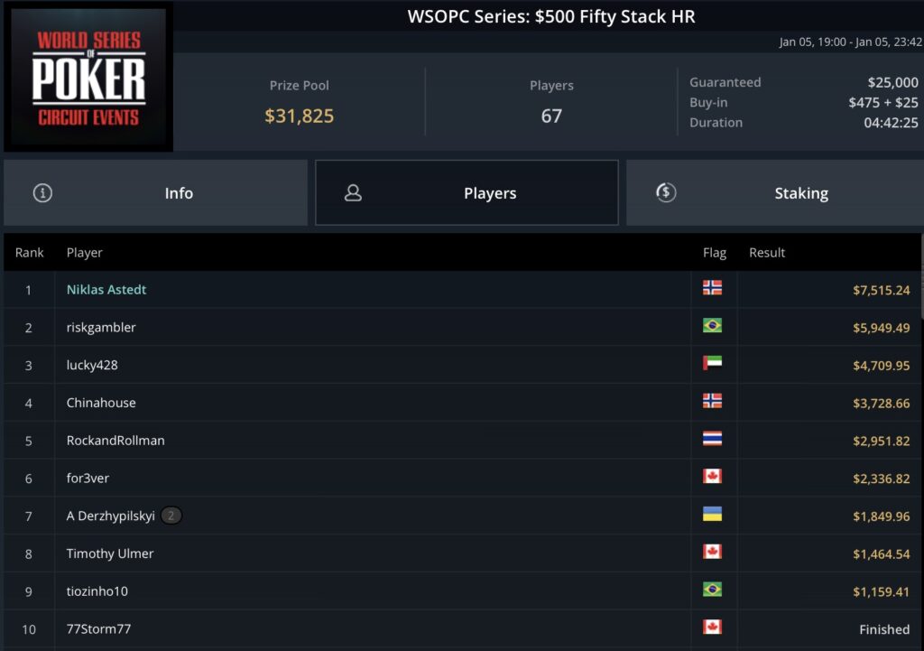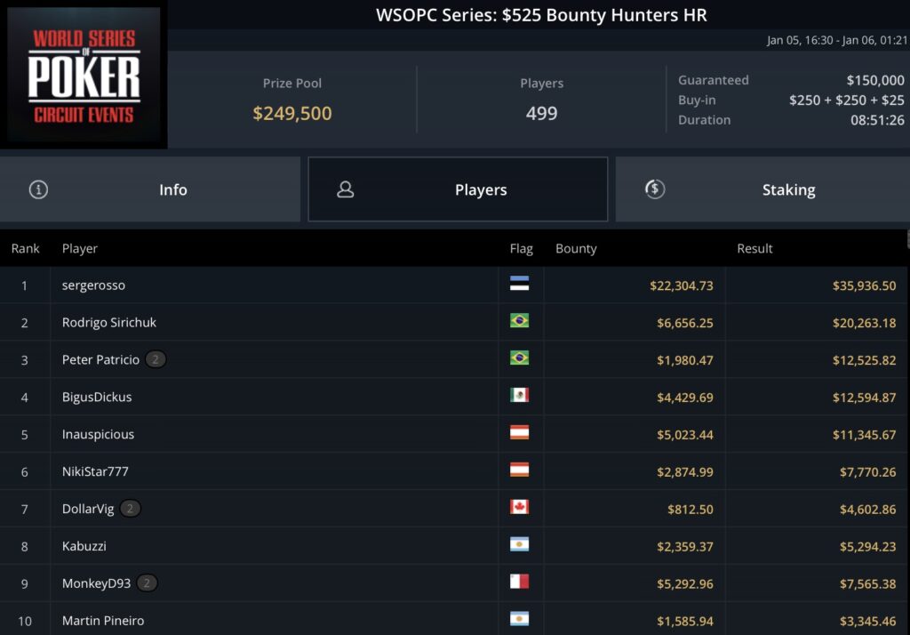 Der Online-Stopp des World Series of Poker Circuits findet derzeit auf GGPoker statt. Hier gibt es jeden Tag jede Menge Turniere in verschiedenen Varianten – hier die wichtigsten Ergebnisse von gestern!