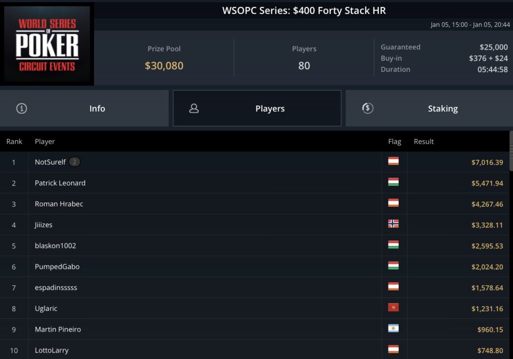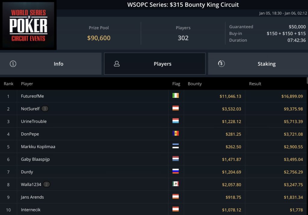 Der Österreicher „Gurdjieff1“ gewann mit seiner zweiten Bullet das $125 Daily Kick-Off mit 380 Entries – $8.498 war die Belohnung. „NotSureIf“, ebenfalls aus der Alpenrepublik, holte sich das $400 Forty Stack HR für $7.016. Runner-Up wurde der gleiche Spieler noch beim $315 Bounty King Circuit, hier gab es nochmal $3.532 + $9.375 oben drauf.