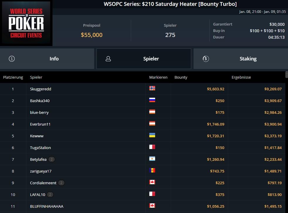 Platz 3 – $210 WSOPC Saturday Heater – „blue-berry“ (AUT) – $2.984 inkl. $175 Bounties