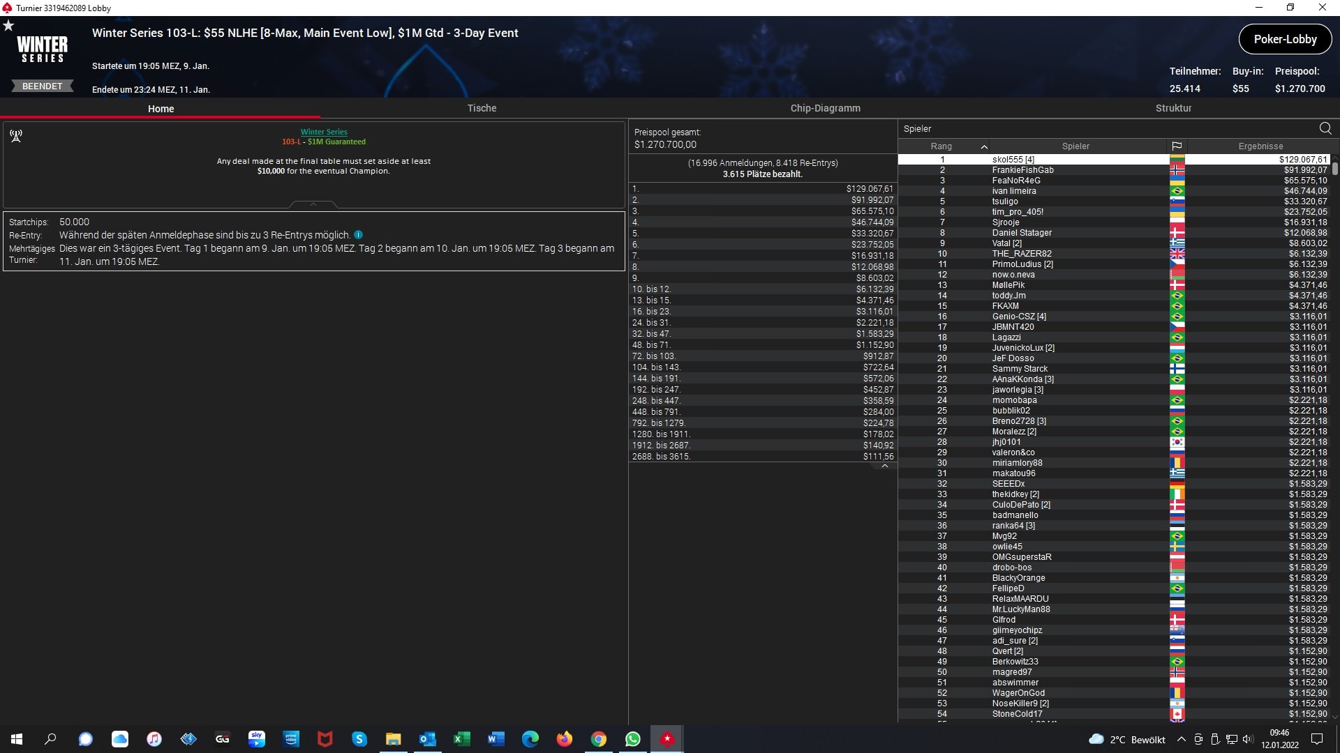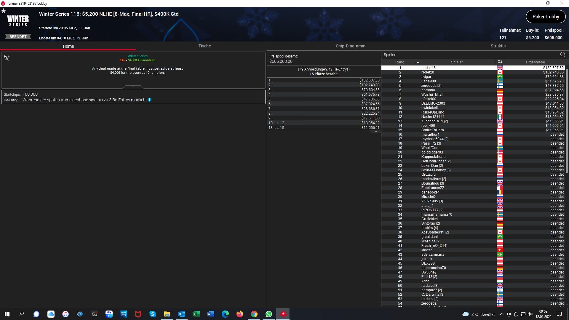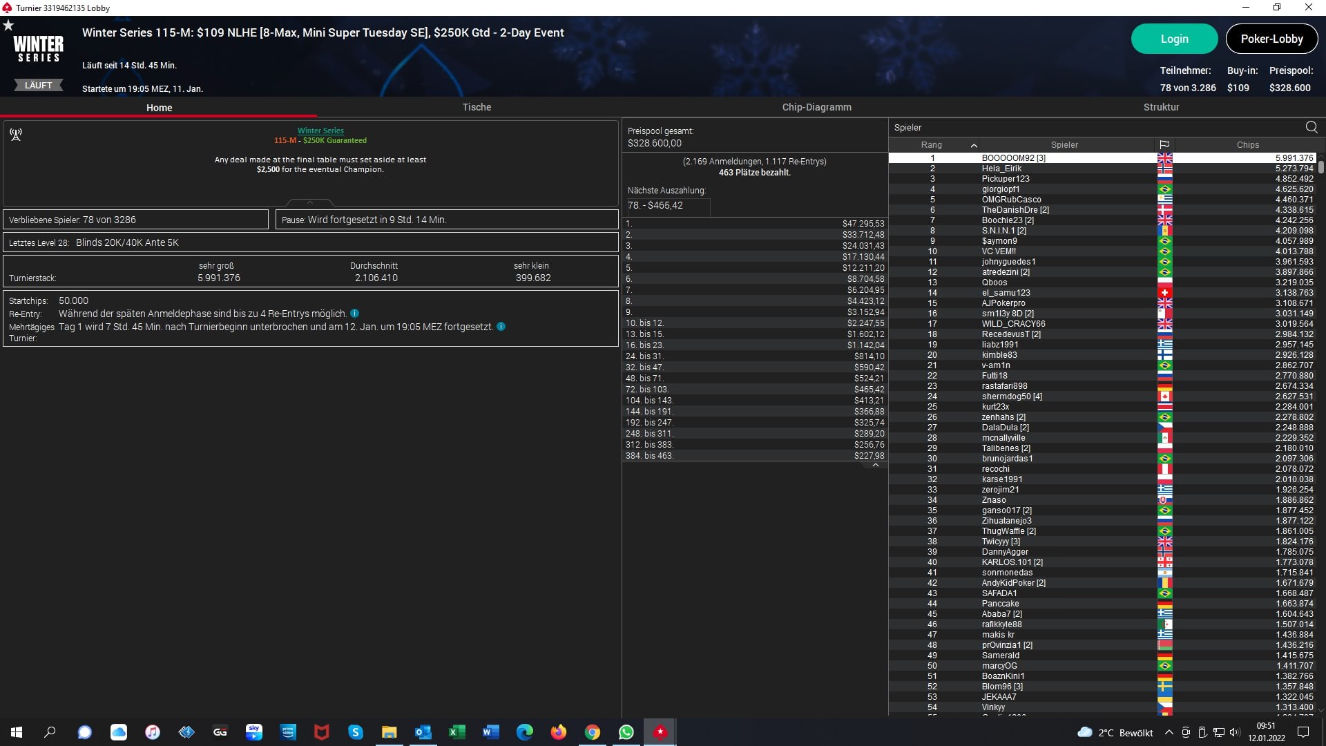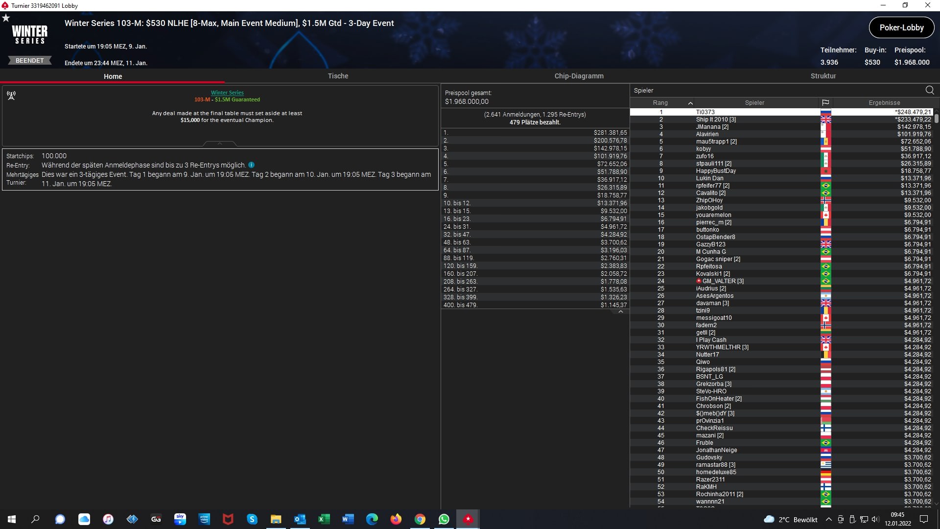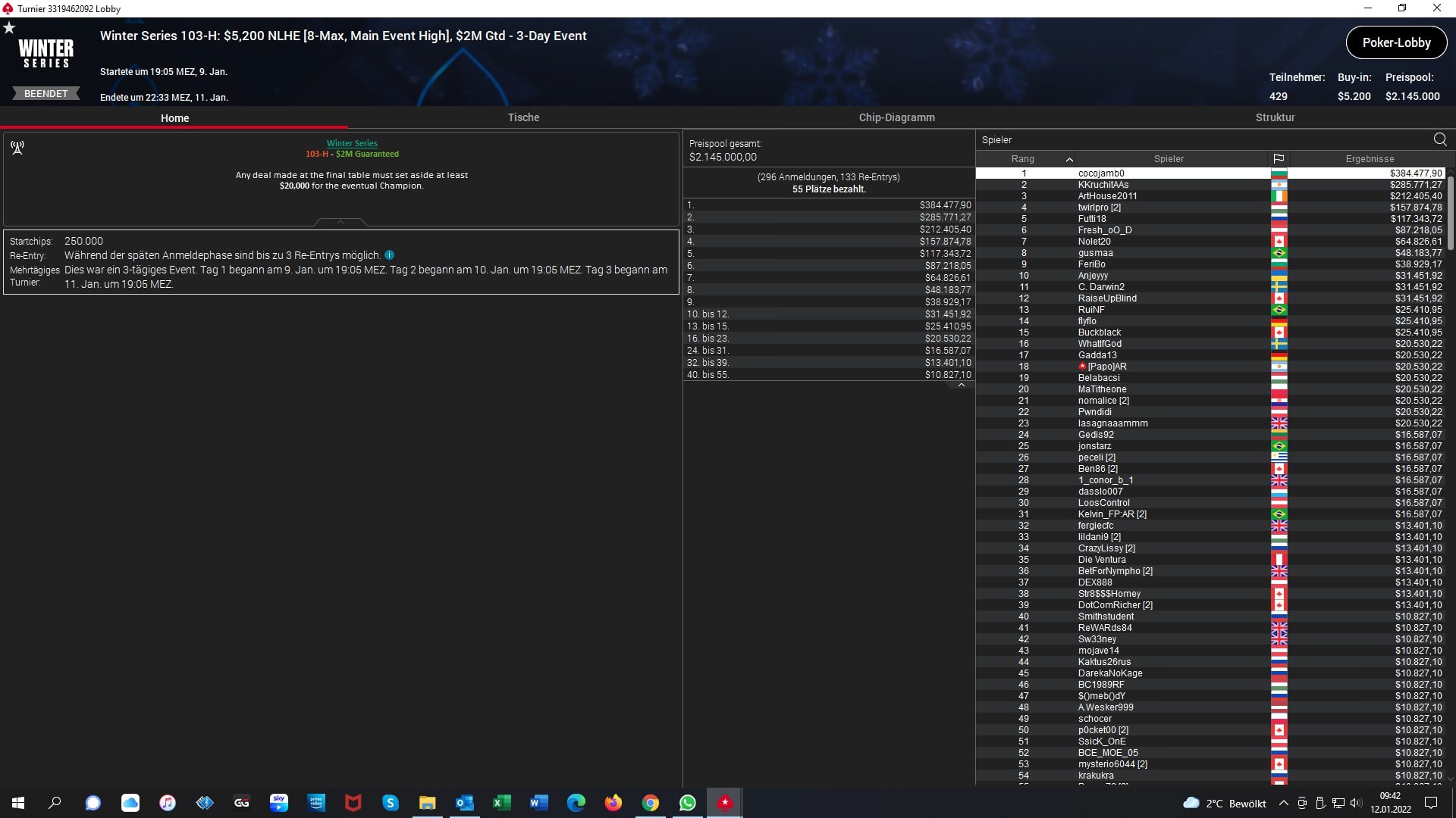 Am Dienstag fiel beim $5.200 NLHE Winter Series Main Event (103-H) die Entscheidung am Final Table. Jens „Fresh_oO_D“ Lakemeier (GER/AUT) startete von Rang 6 ins Finale und belegte schließlich als bester DACH-Spieler auch Platz 6 für $87.218. Gewinnen konnte das Turnier der Bulgare „cocojamb0“ für $384.477.