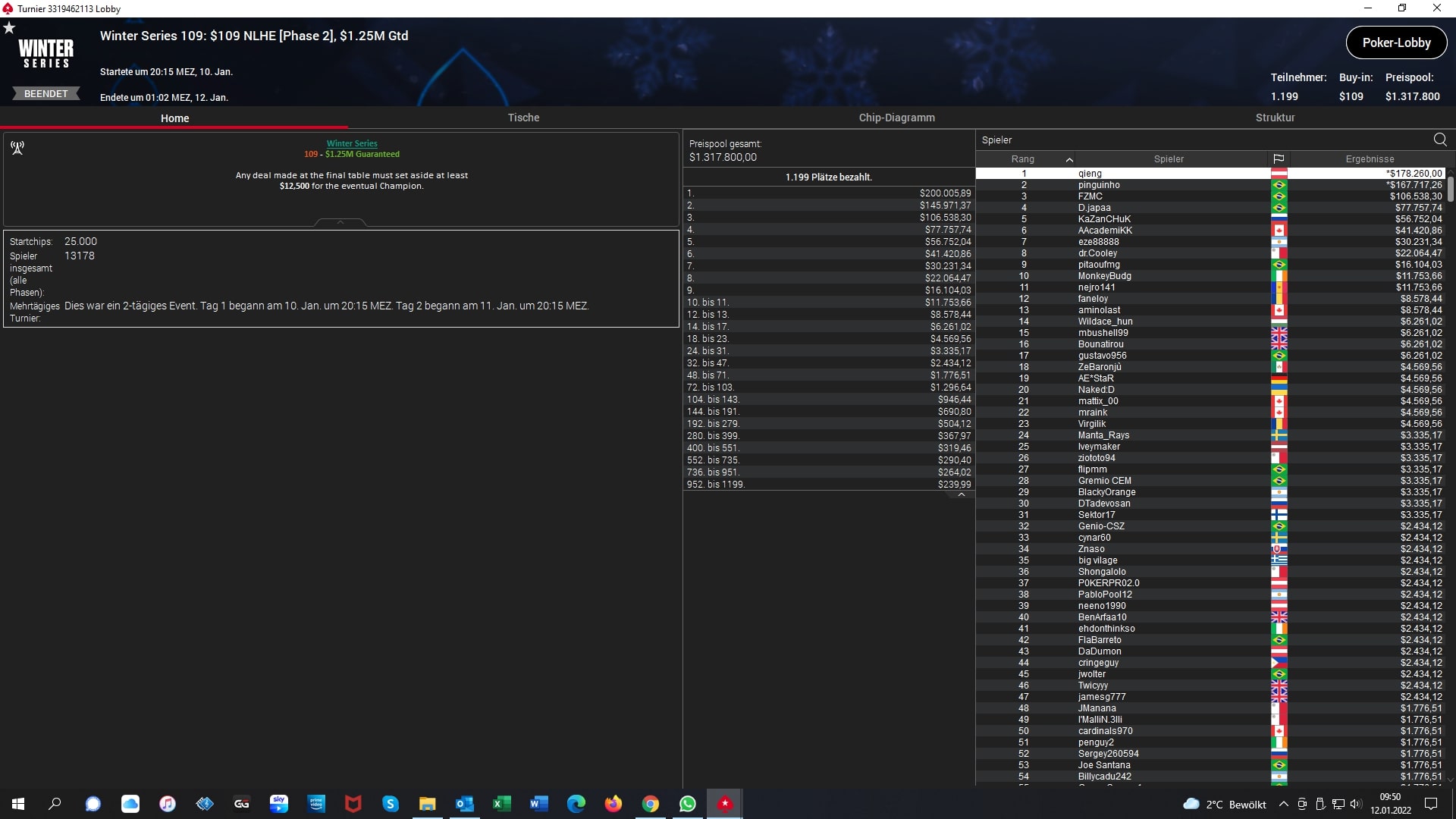 Den größten Cash von unseren Jungs gab es für den Österreicher „qieng“, der das $109 NLHE Phase Event #109 nach einem Heads-Up Deal für ein Preisgeld von $178.260 gewann.