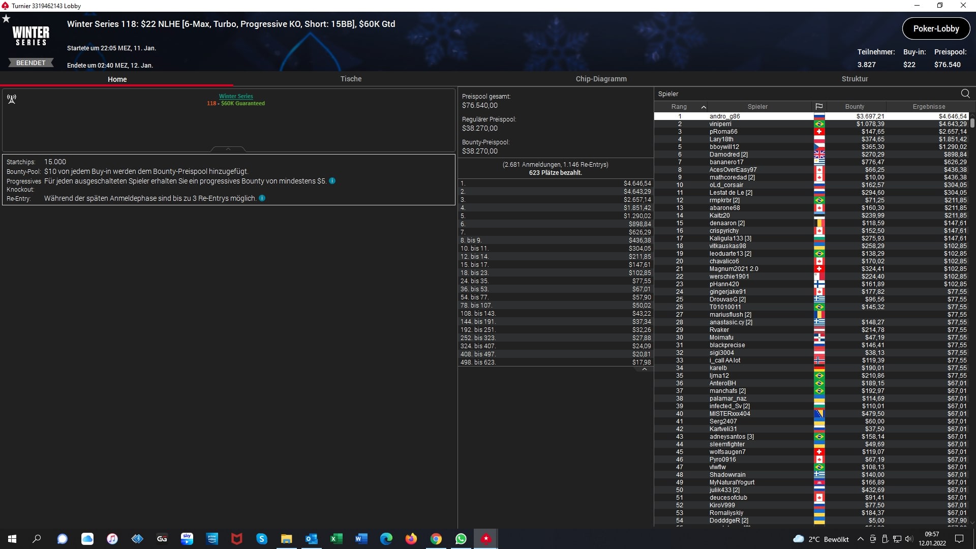Platz 3 – #118 – $22 NLHE 6-Max Turbo PKO – „pRama66“ (SUI) – $2.657 + $147 Bounties