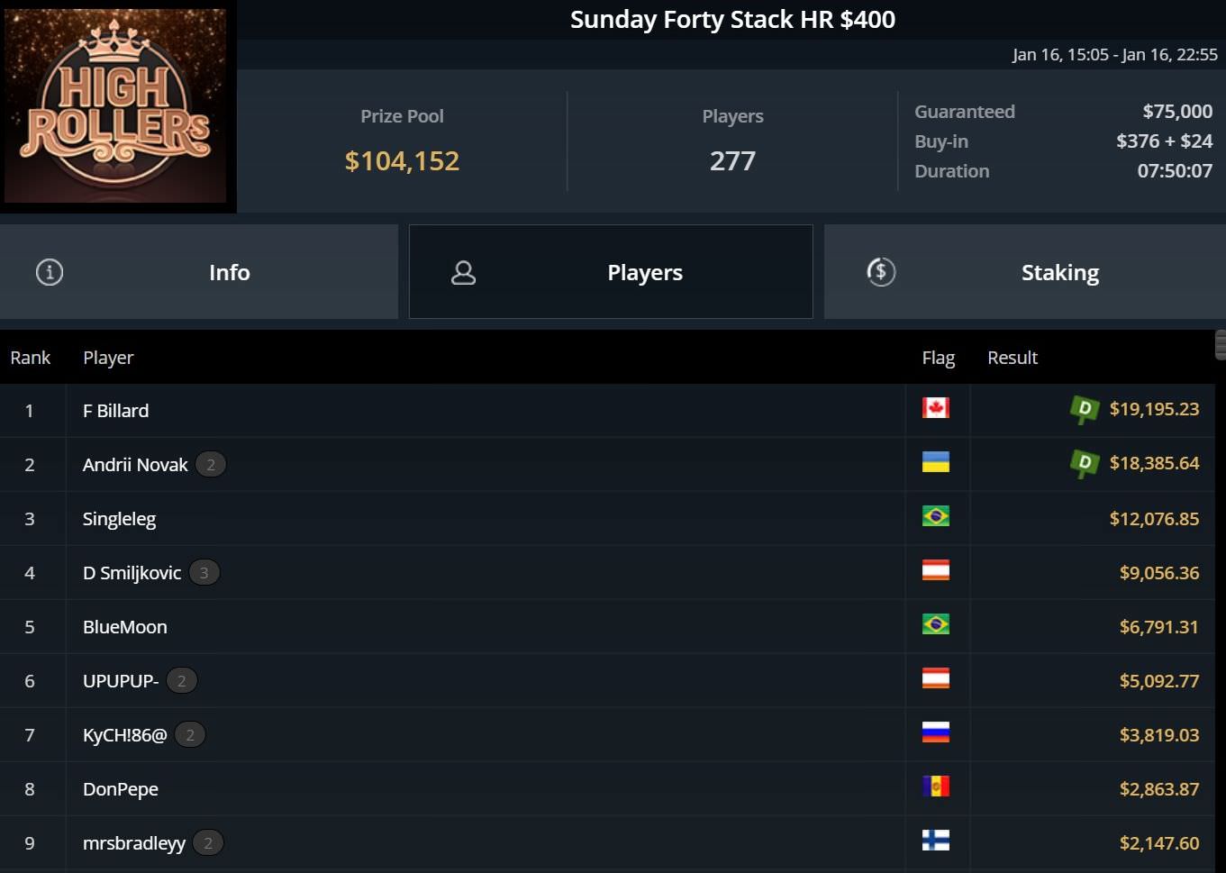 Nun aber zu den deutschsprachigen Erfolgen. Einen Doppelsieg für Roland „Gwriden“ Rokita und „xxxfifi87“ gab es beim $150 GGMasters, der mit $62.000 bzw. $46.000 fürstlich entlohnt wurde.