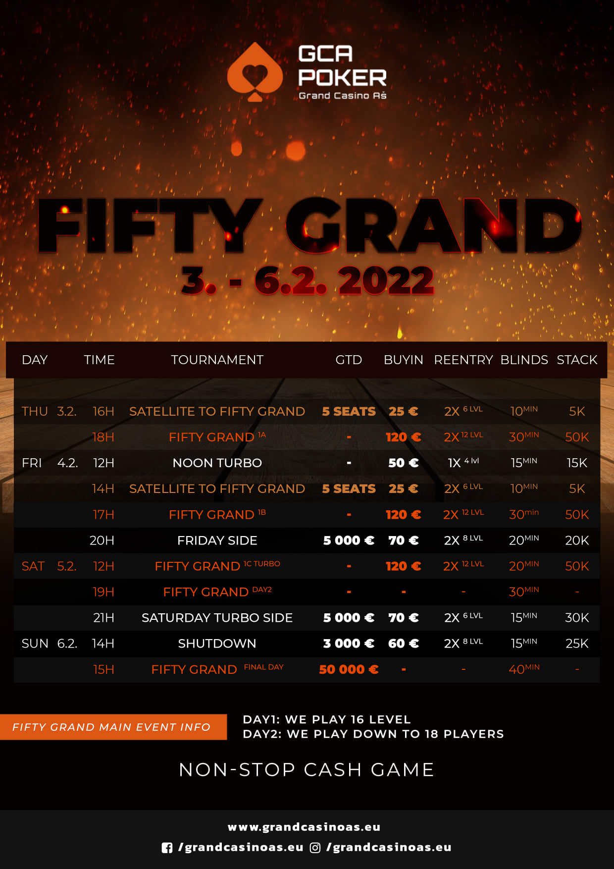 Beim Fifty Grand gibt es eine Preisgeldgarantie von €50.000 und das bei einem Startgeld von €120!