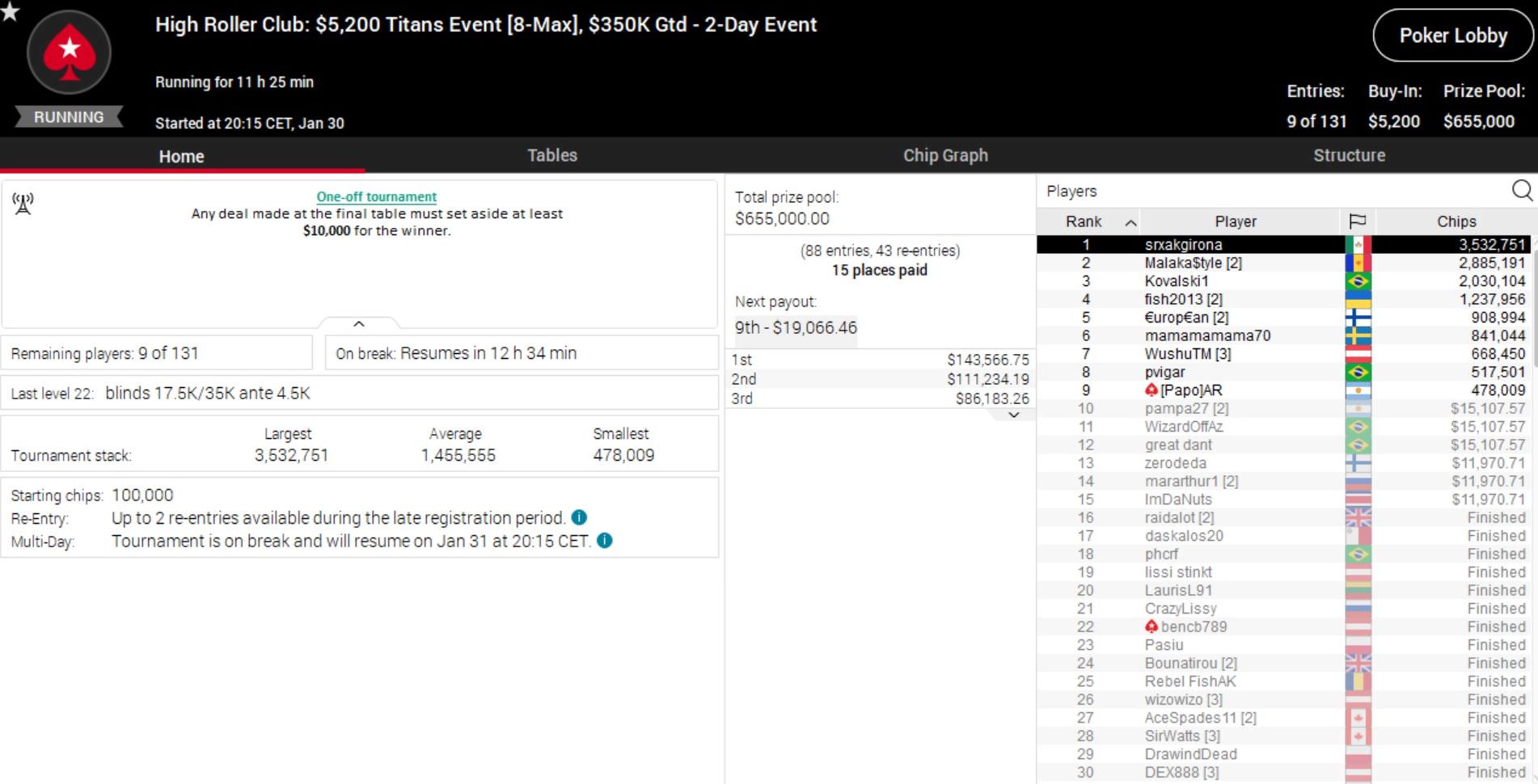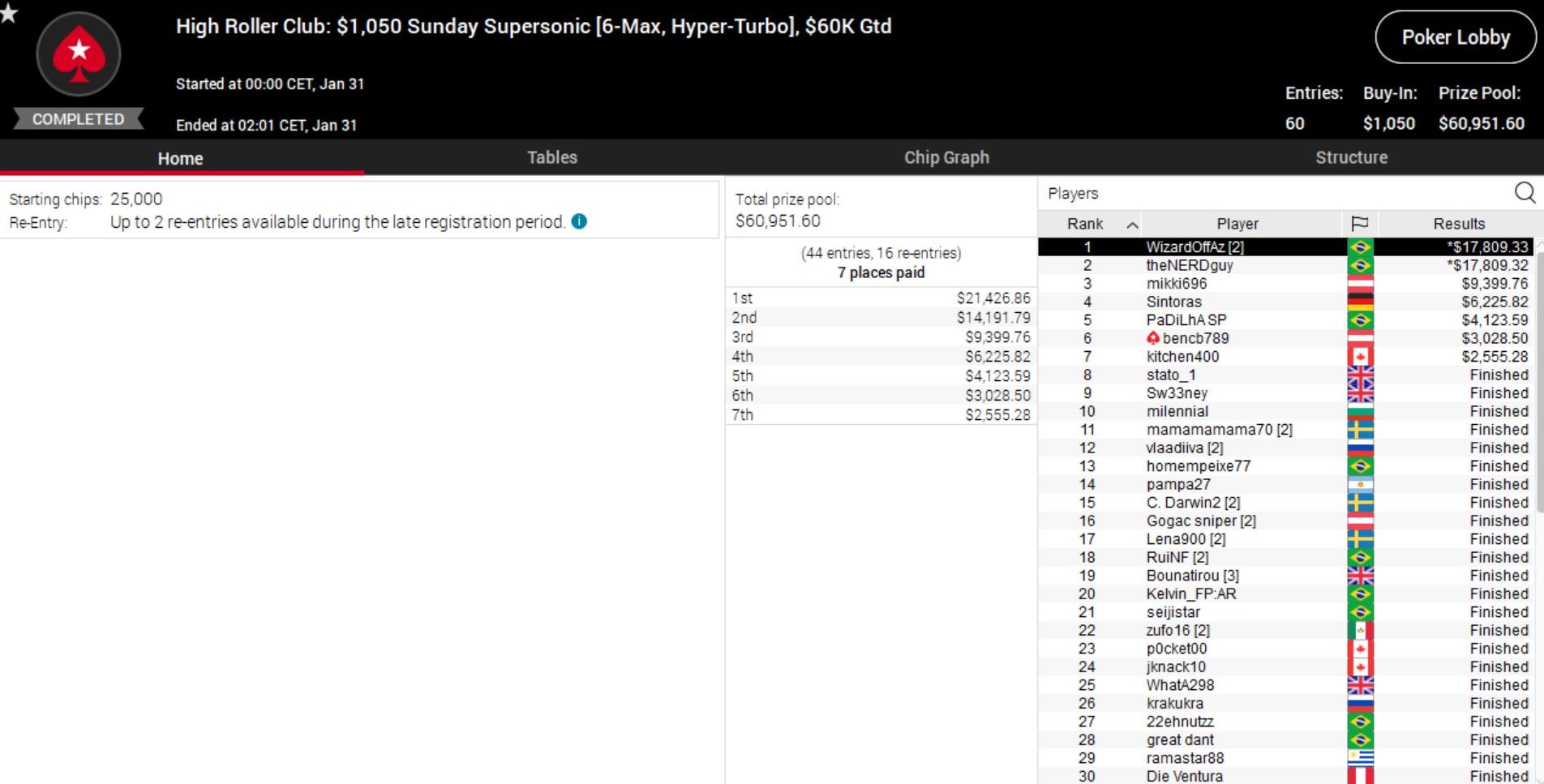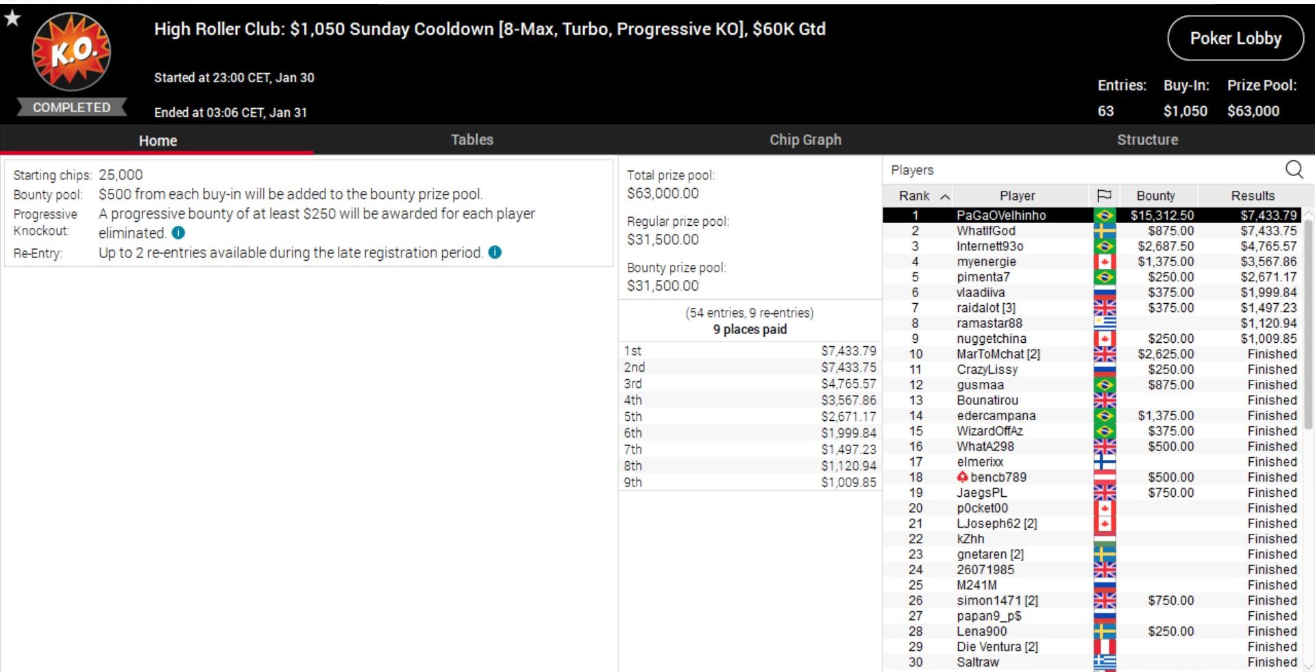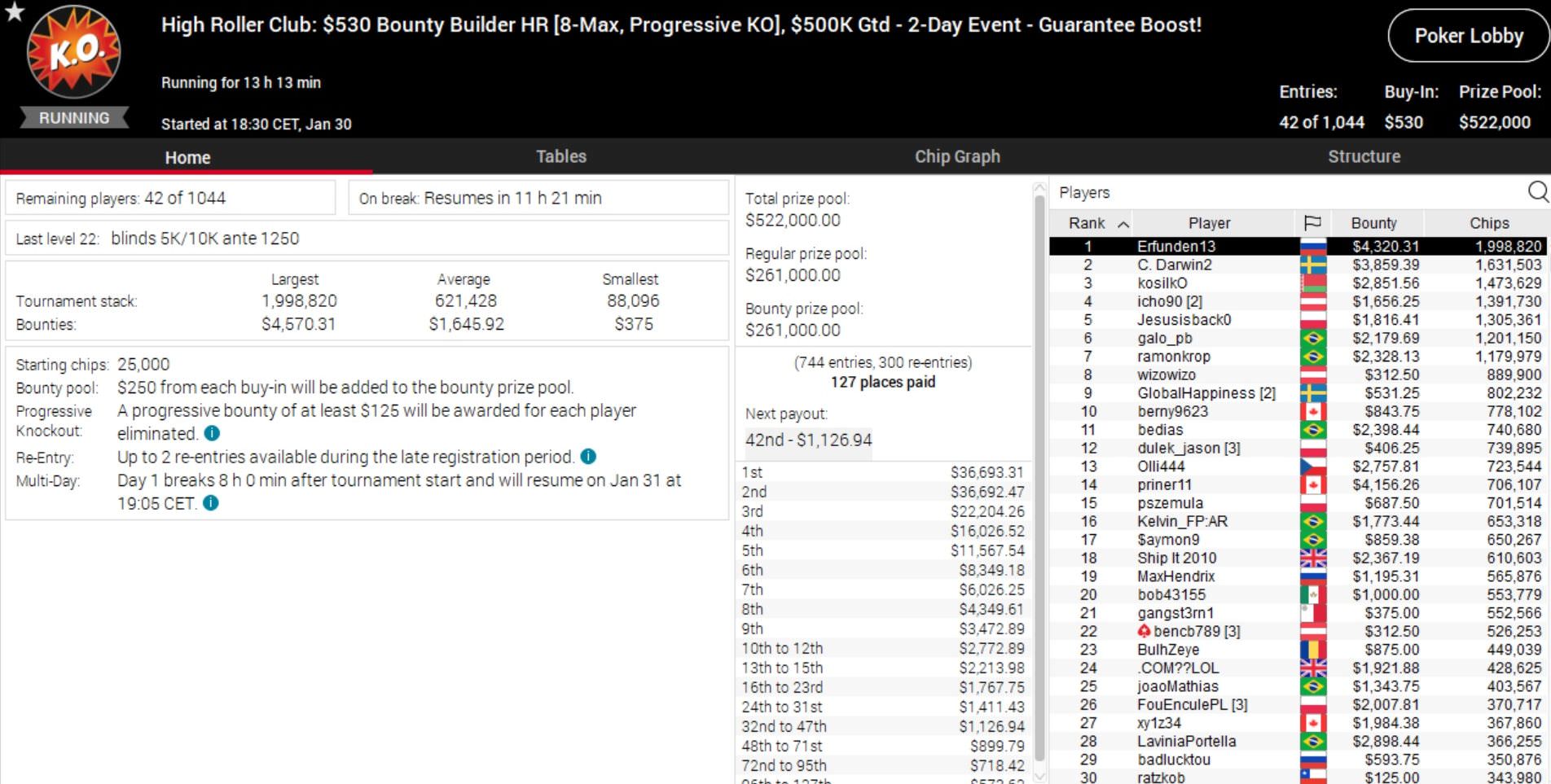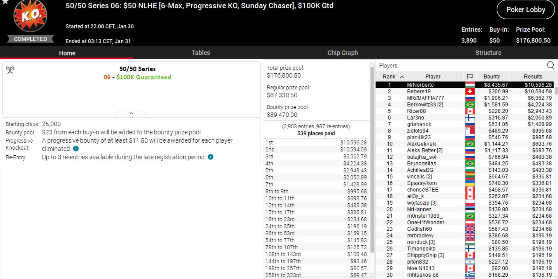 Da passt es ins Gesamtbild, dass auch bei der 50/50 Series Sunday Million ein Deutscher auf Platz 1 übernachtet.
