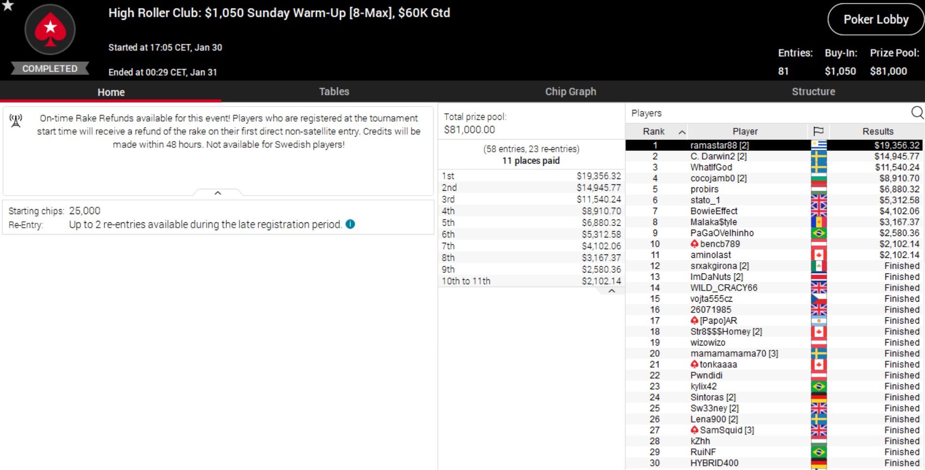 Damit war die Erfolgsbilanz aber noch nicht beendet. Bei Event 5 wurde „DonkPlayer19“ ebenfalls Zweiter und räumte über $23.000 ab, außerdem wurde der Schweizer „Bebere19“Zweiter bei Event 6 und erhielt knapp $11.000.