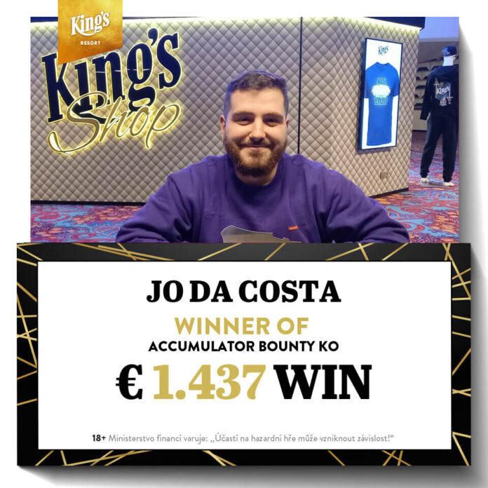 Beim KO Accumulator wurden die maximal möglichen 117 Entries erreicht, sodass neben den €25 Bounties pro Spieler ein Preispool in Höhe von €5.411 ausgespielt wurde. Den Sieg samt €1.437 Prämie holte der Portugiese Jo Da Costa vor David Loumiere (€998) aus Frankreich und Hermogenes Oliva Soto (€660) aus Spanien. Der Schweizer Pierre Lomabrdo (€417) belegte Platz fünf, der Deutsche Duc Nguyen (€200) Platz acht.