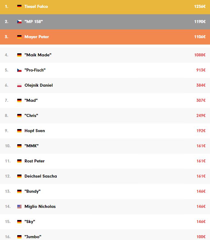 Zum offiziellen Sieger wurde Falco Tiesel aus Deutschland gekürt, seine Prämie betrug €1.236. Mit Peter Mayer (€1.106) und „Maik Made“ (€1.088) waren noch zwei weitere Deutsche Teilnehmer am Deal beteiligt.