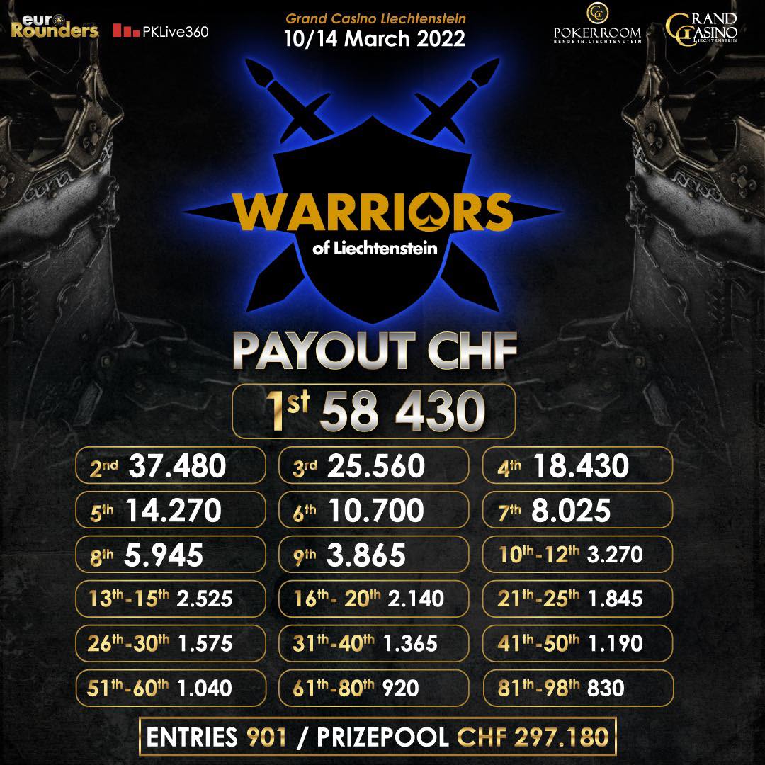 Auch am Sonntag war das Warriors of Liechtenstein im Grand Casino Liechtenstein nicht zu stoppen.