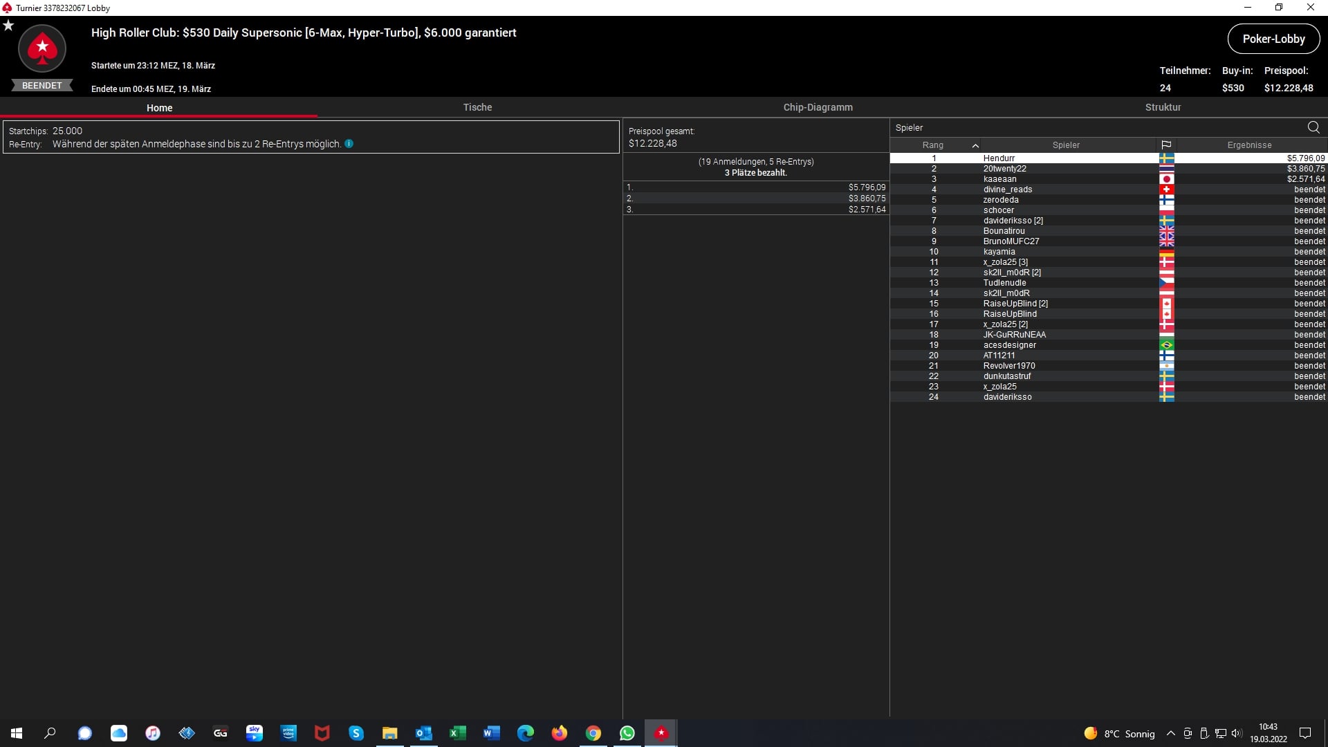 Bei den drei anderen Events spielten die deutschsprachigen Online-Grinder keine Rolle.