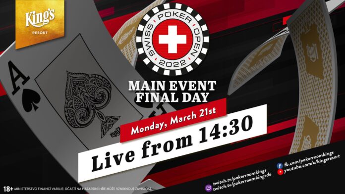 Am Montag gibt es ab 14:30 Uhr live aus dem King’s Resort Rozvadov, den Livestream vom Finaltag des €500+€50 Swiss Poker Open Main Events. Die Action wird 30 Minuten zeitversetzt mit Hole Cards übertragen und auf Deutsch von Stefan Hachmeister kommentiert.