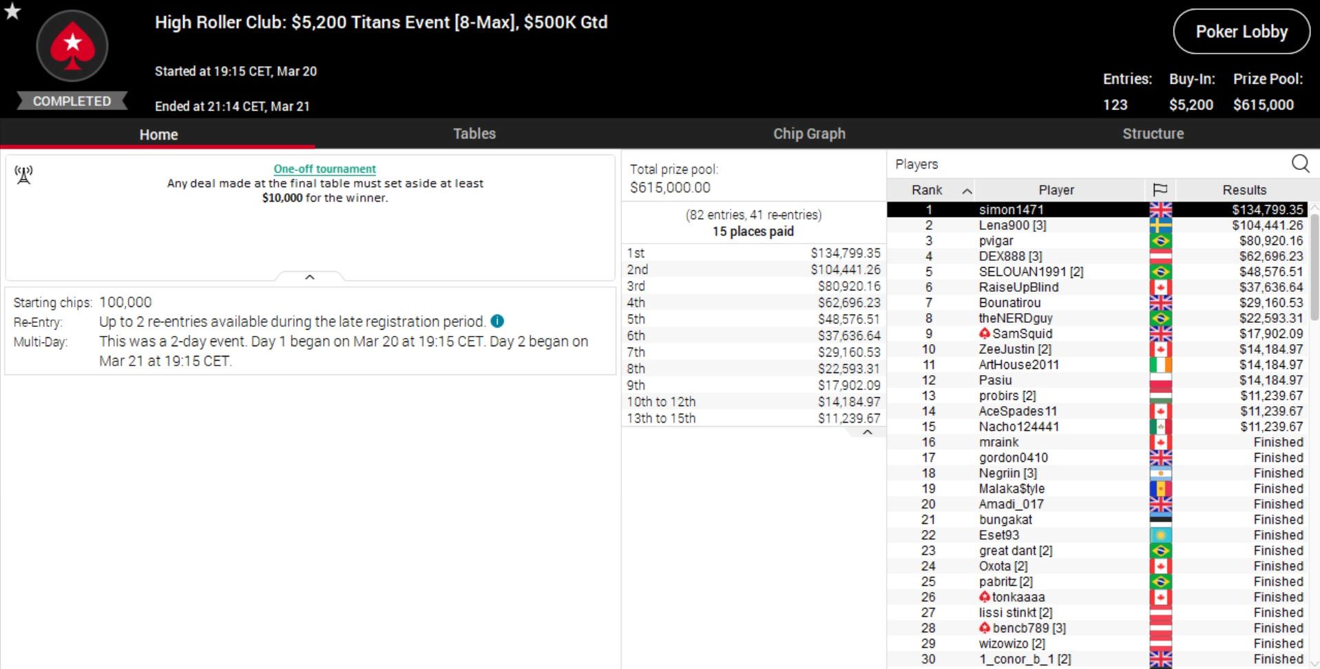 Zwei Deutsche mischten bei den Titanen noch mit, doch der Sieg und knapp $135.000 gingen an Simon „simon1471“ Higgins aus Großbritannien.