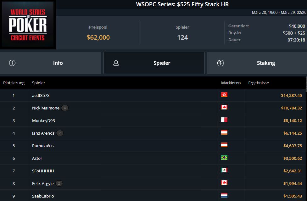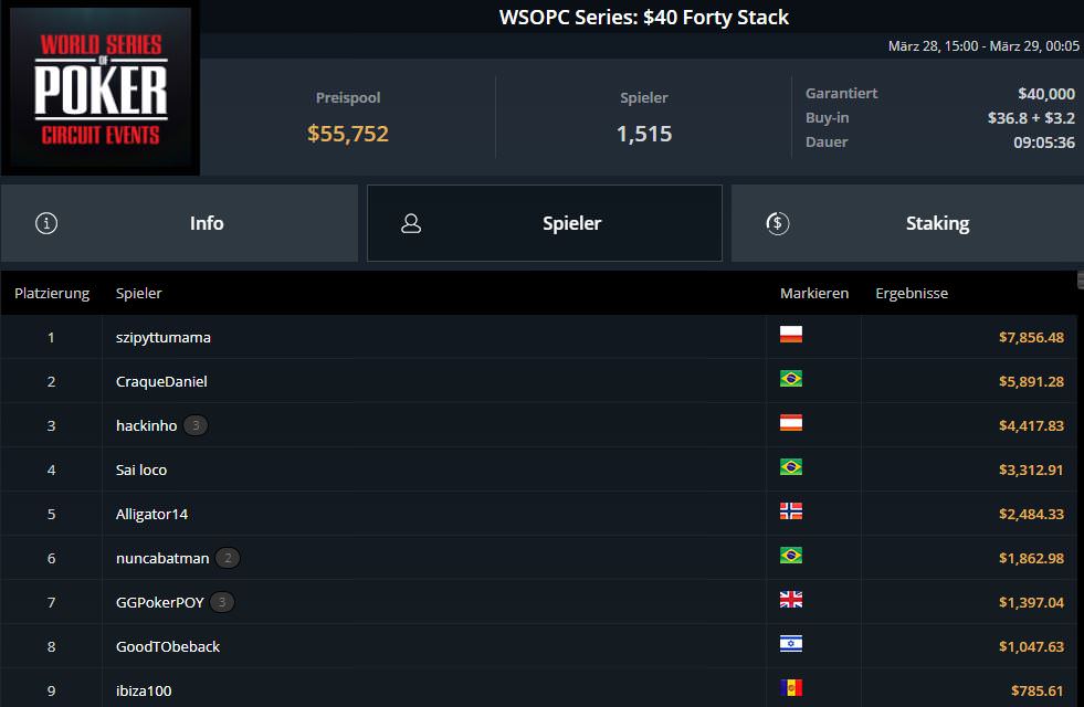 Am Montag standen auf GGPoker wieder zahlreiche Turniere der WSOP Spring Circuit Series auf dem Programmplan und aus deutschsprachiger Sicht gibt es erneut viele starke Ergebnisse zu vermelden.