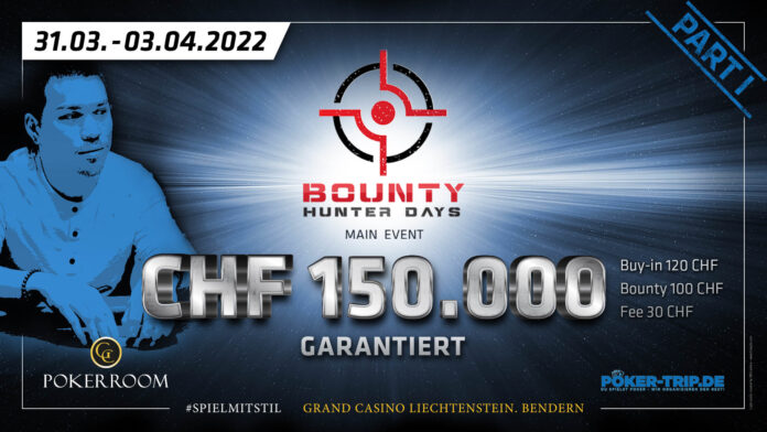 Sonntag ab 18:20 Uhr gibt es den Livestream vom Finale des CHF 120 + 100 + 30 Bounty Hunter Days Festivals powered by Poker-Trip.de aus dem Grand Casino Liechtenstein.