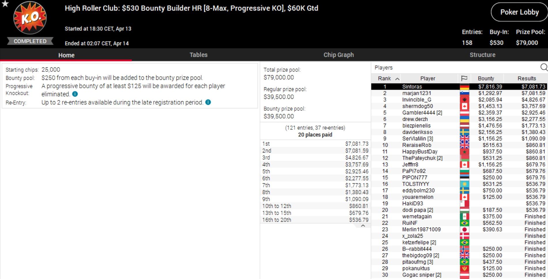 Für den erfolgreichen Auftakt sorgte Online-Legende „Sintoras“ beim $530 Bounty Builder.
