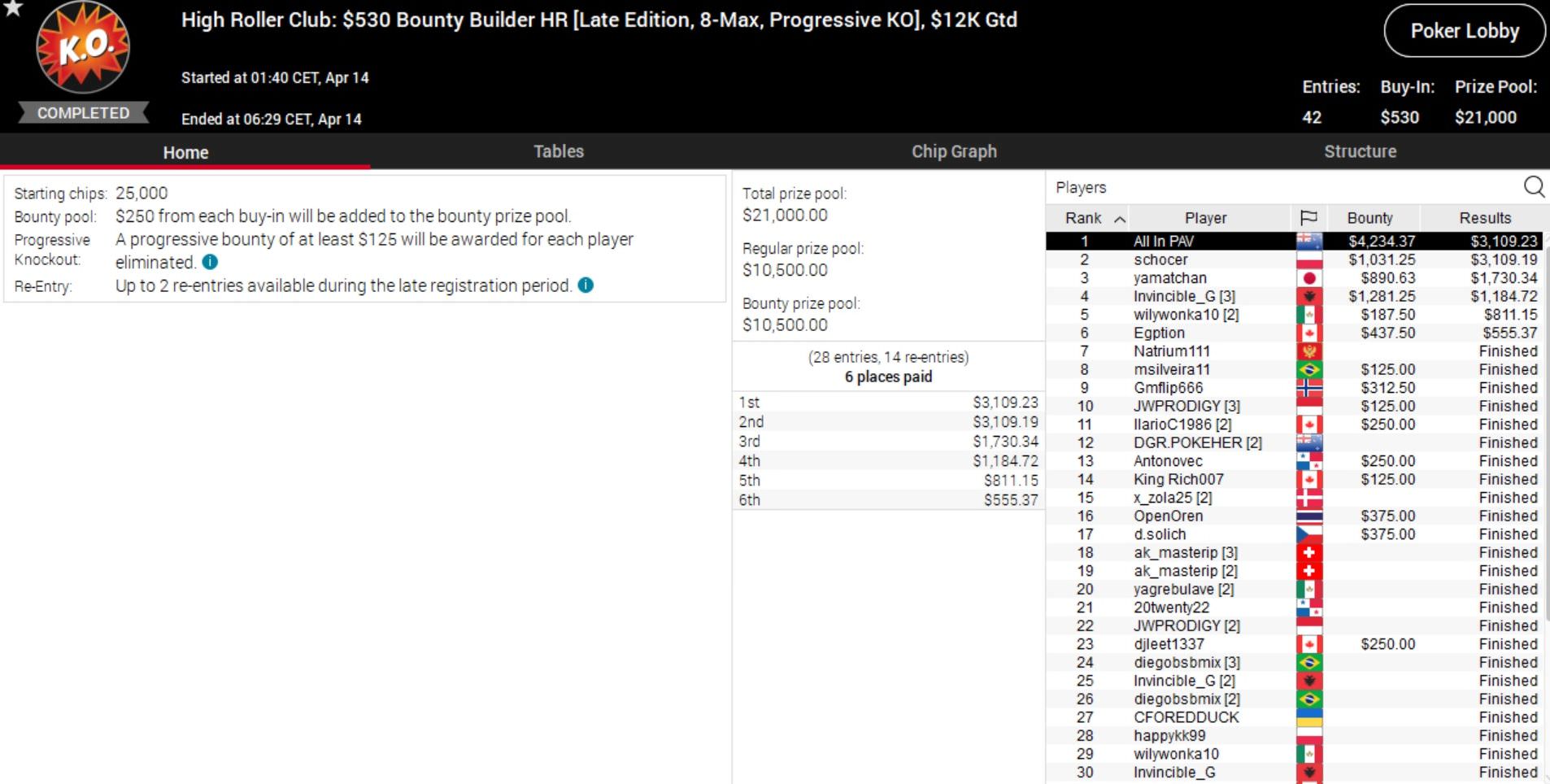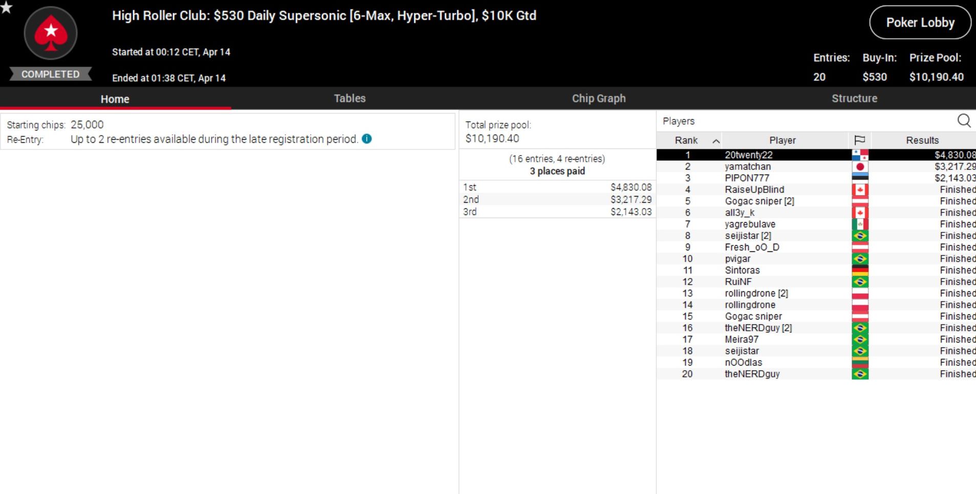 Auf PokerStars wurden im High Roller Club gestern sechs Turniere ausgetragen, und dabei schnitten die deutschsprachigen Spieler gut ab.