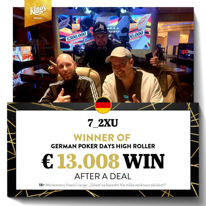 Mit „7_2xU“ und Patrick Wolff erreichten zwei Spieler aus Deutschland das Heads-Up und einigten sich dann auf einen Deal, der Wolff €12.000 und dem offiziellen Sieger „7_2xU“ gut €13.000 einbrachte.