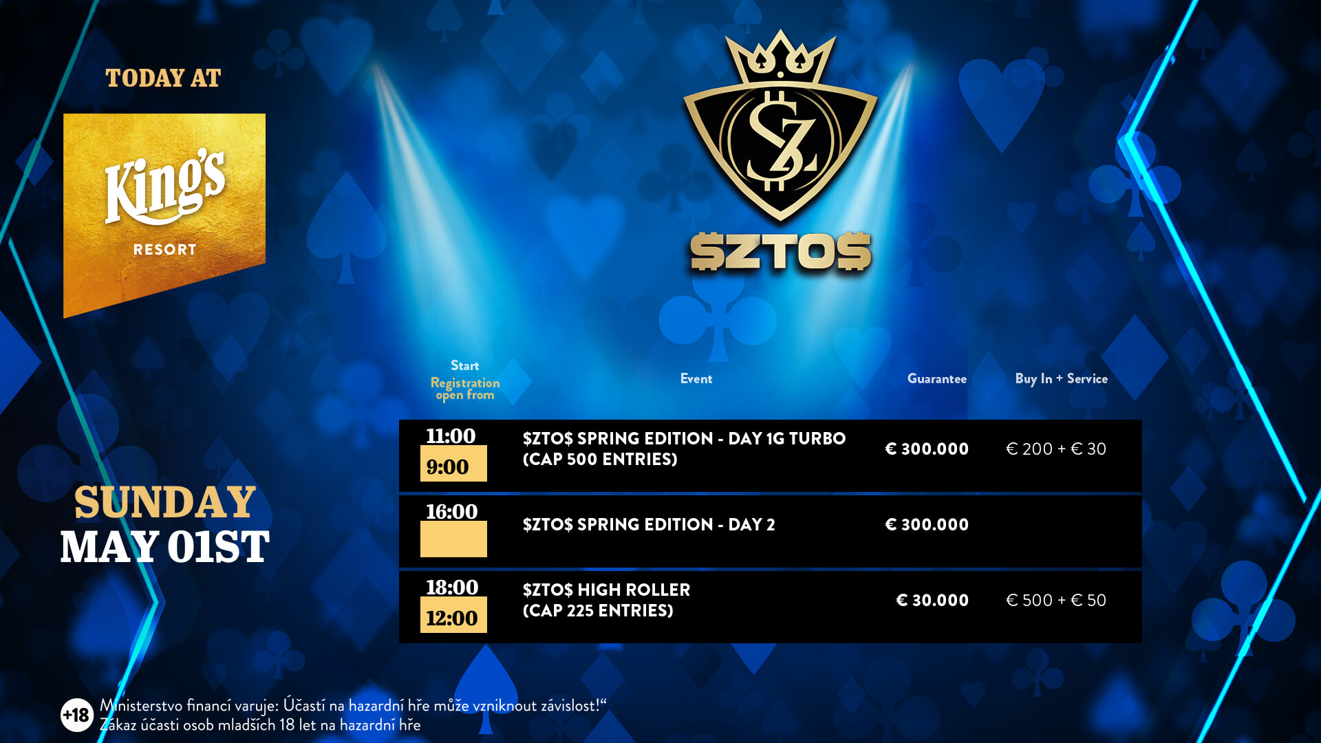 Heute steht im King’s Resort der €200+30 $ZTO$ Main Event im Blickpunkt. Am Abend wird es aber auch noch das €500+50 $ZTO$ High Roller mit €30.000 garantiert angeboten. Die Anzahl Entries ist bei diesem Turnier auf 225 begrenzt.