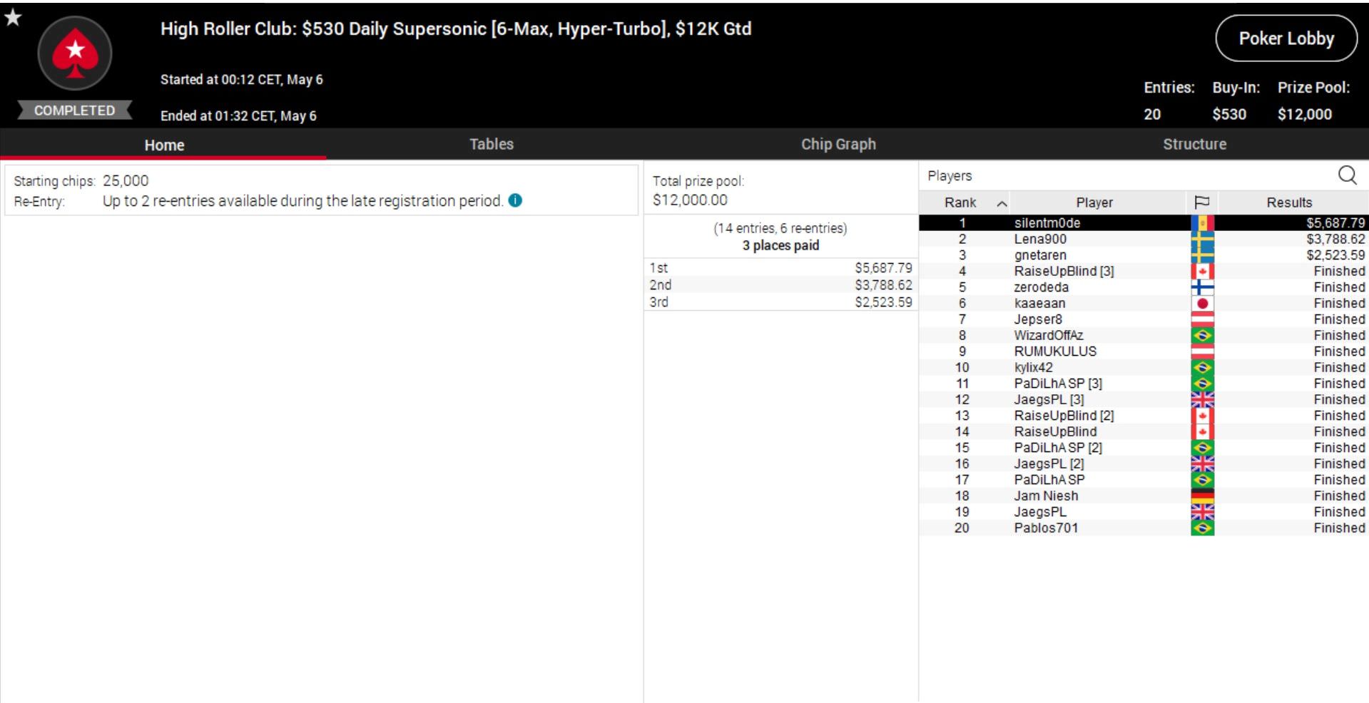 Im High Roller Club von PokerStars wurden gestern vier Turniere ausgetragen.