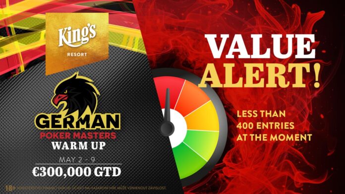 Dem €200+€30 German Poker Masters Warm-Up Event im King’s Resort Rozvadov droht ein massives Overlay. Bei dem Turnier sind €300.000 (inklusive vier €10.350 WSOP Europe Main Event Tag 1a Tickets) garantiert.