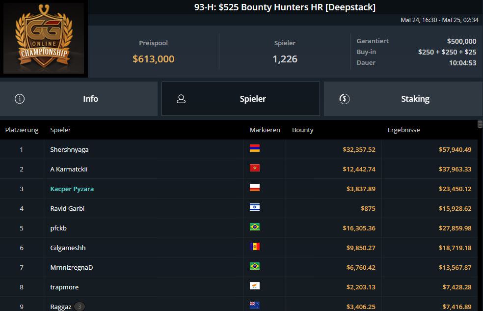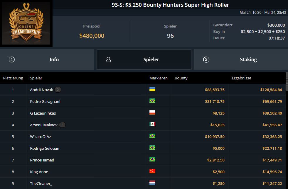 Der gestrige Spieltag der GG Online Championship auf GGPoker hatte vor allem für die Highroller mal wieder zahlreiche Turniere zu bieten. Für die erfolgsverwöhnten deutschen Top-Spieler lief es diesmal aber nur vereinzelt rund.