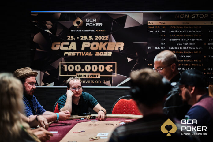 Das €180+20 Main Event mit €100.000 Garantie konnte in Flight 1b weitere 104 Entries einsammeln und kommt damit auf insgesamt 187 Starte in zwei Flights. 39 Spieler von den ursprünglich Gestarteten konnten sich für Tag 2 qualifizieren.